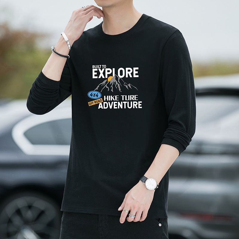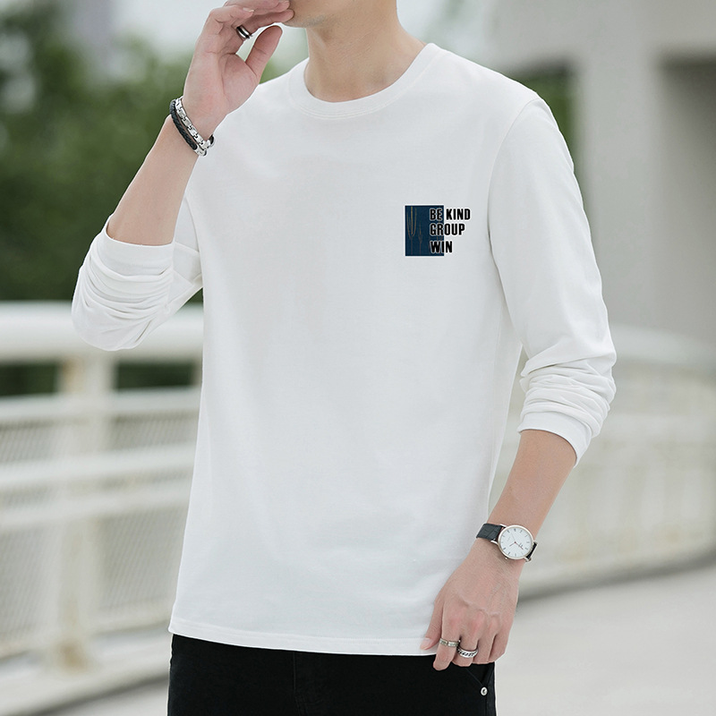 Главная страница > Хлопковая футболка с длинными рукавами Мужская весенне-осенняя Свободная Повседневная хлопковая Футболка с круглым вырезом Одежда Внутренняя Базовая рубашка Модная