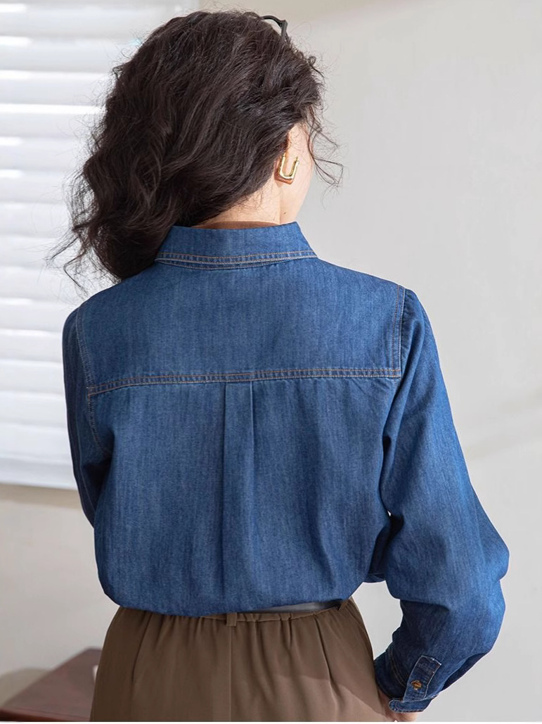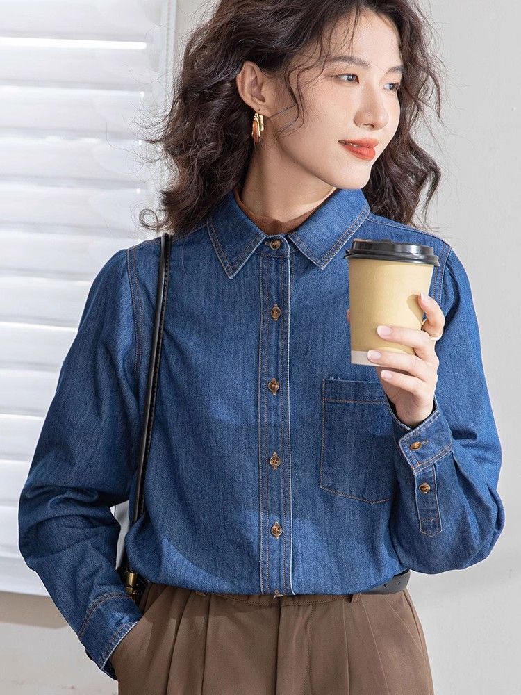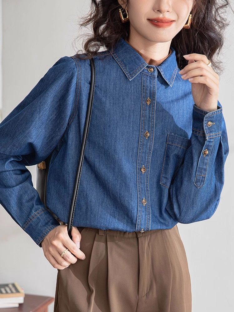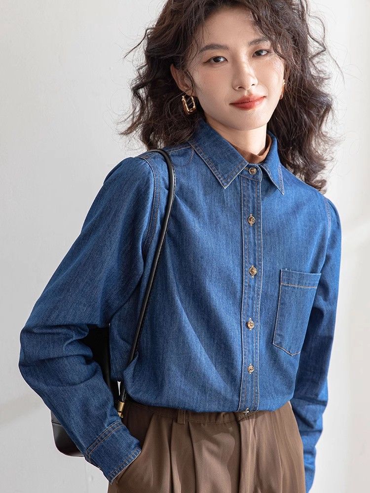 Главная страница > Женская джинсовая рубашка с длинным рукавом, многослойная, новая модель осени 2025, универсальная, в стиле ретро, с классическим кроем.