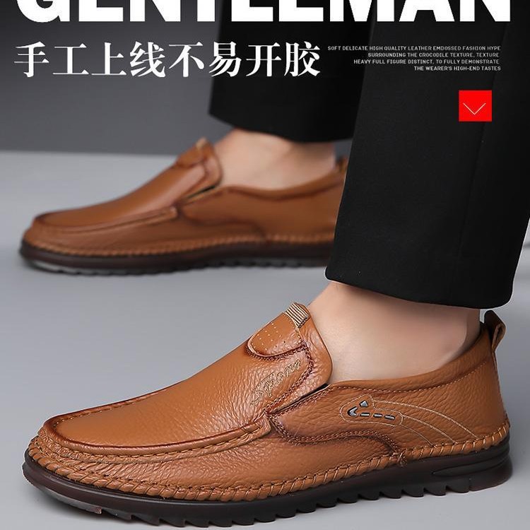 Главная страница > [Первый слой воловьей кожи] Новые мужские кожаные туфли с мягкой подошвой и мягкой поверхностью/не вонючие ноги/повседневная обувь для вождения среднего и пожилого возраста ручной работы