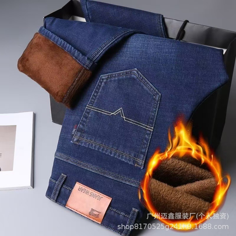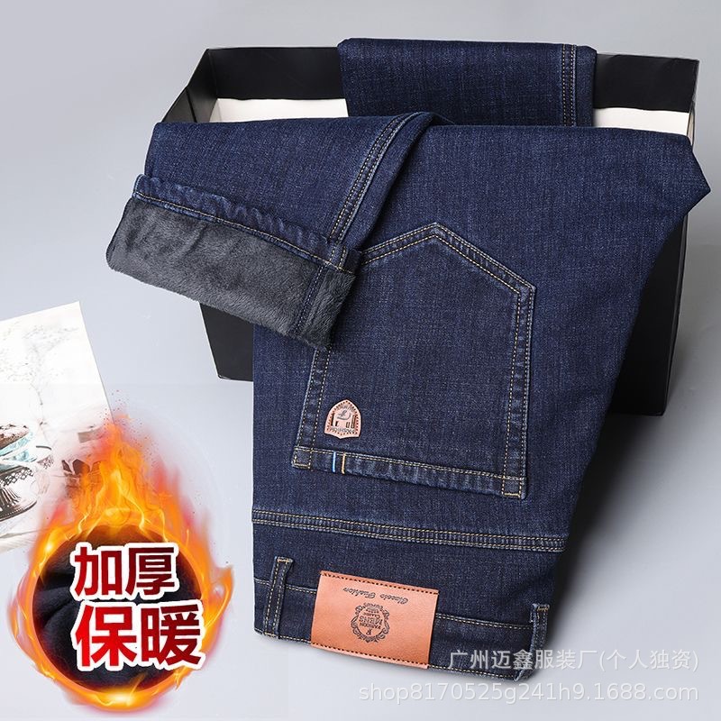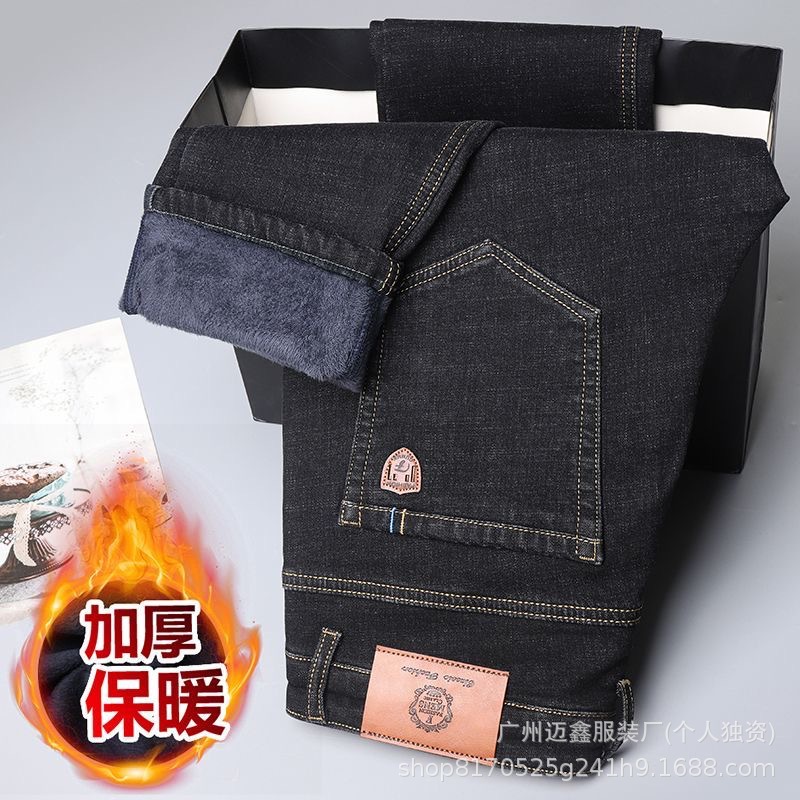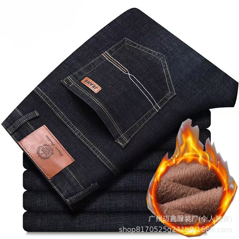 Maixin джинсы мужские весенние и осенние зимние плюшевые толстые эластичные прямые свободные деловые и повседневные мужские длинные брюки
