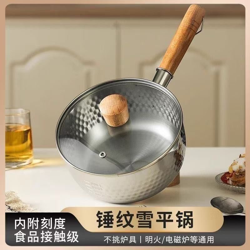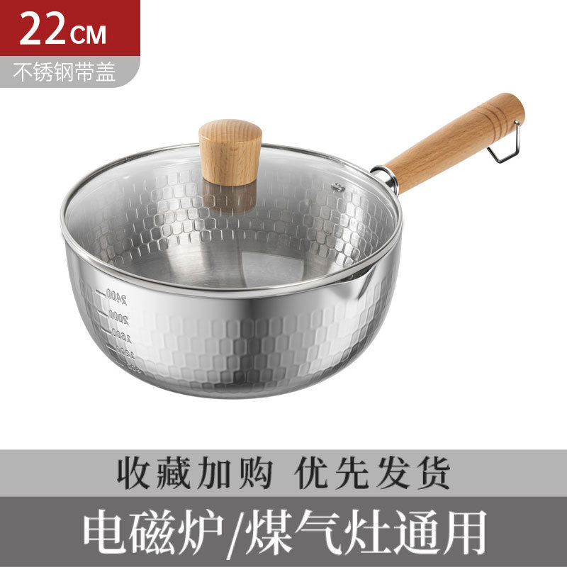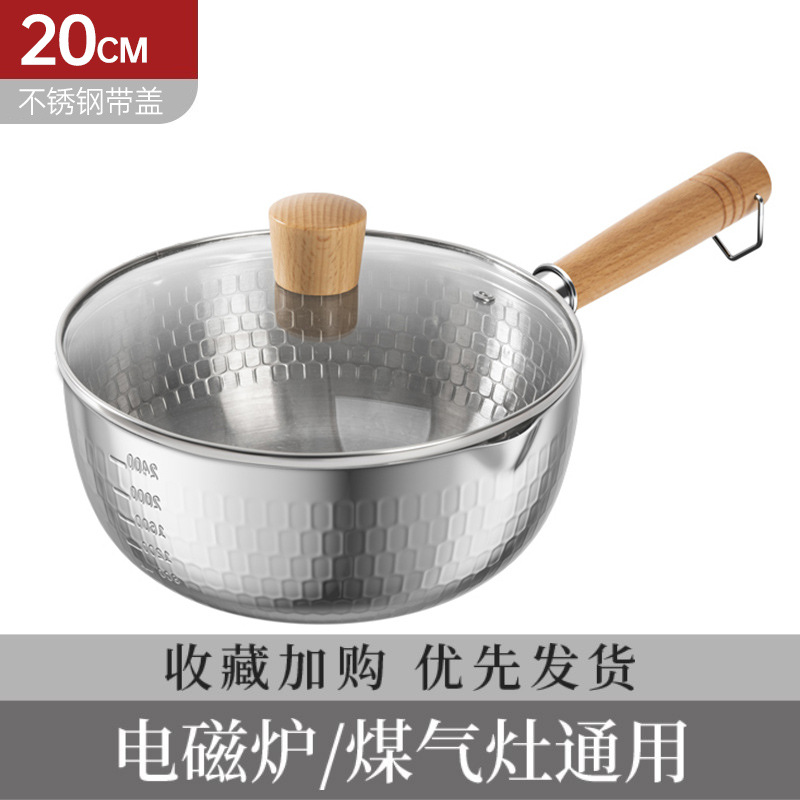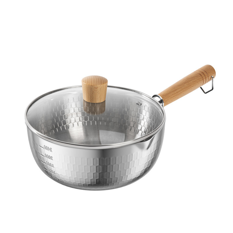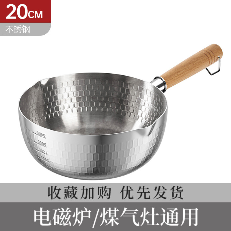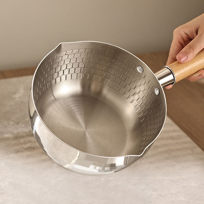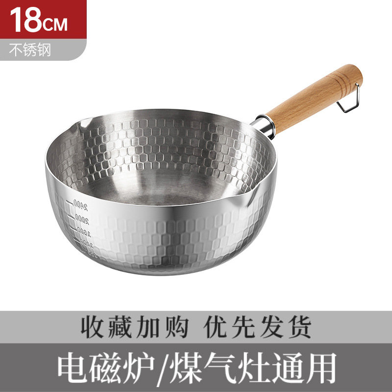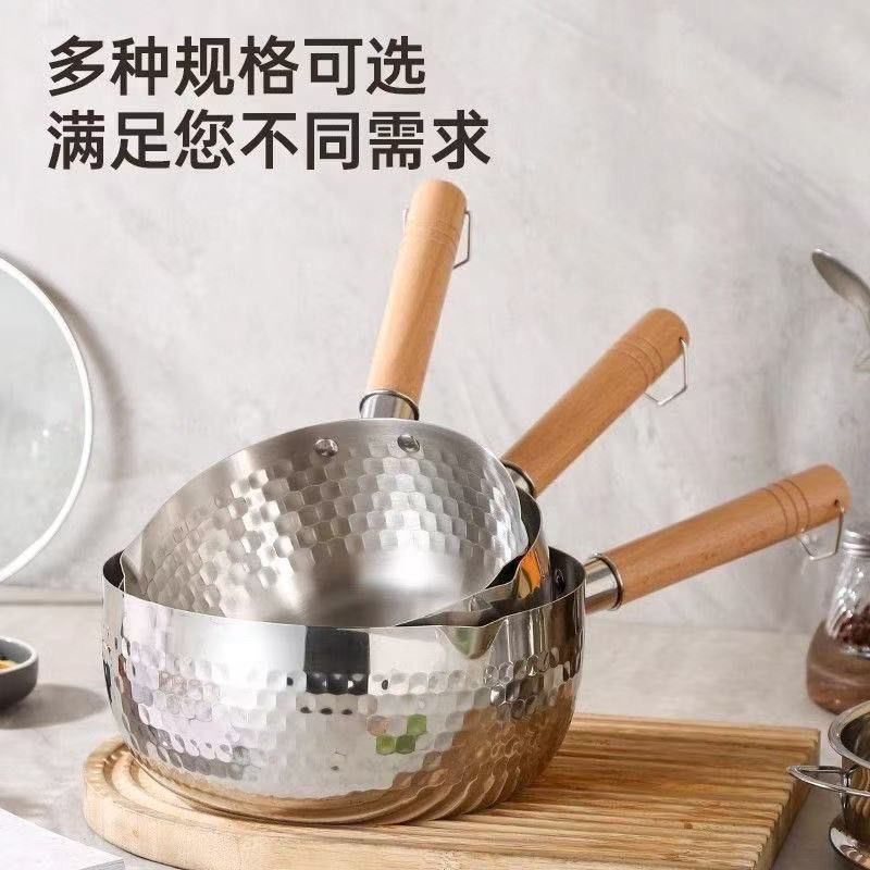 Главная страница > Кастрюля Yukihira из нержавеющей стали, деревянная ручка в японском стиле, маленькая кастрюля для молока, домашняя кастрюля для детского питания, кастрюля для приготовления лапши, кастрюля для супа с кованой текстурой