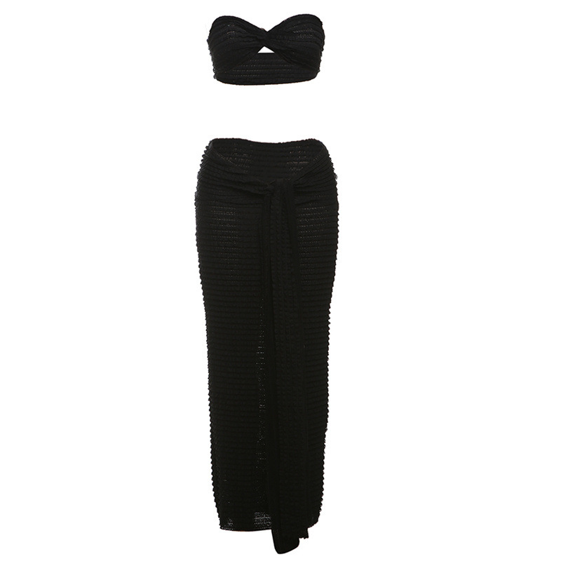 Главная страница > Европейская и американская одежда, осень 2024, новая мода, сексуальный топ-труба, чистый цвет, облегающий костюм с длинной юбкой на пупке и шнуровкой