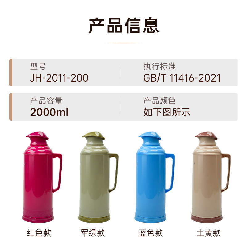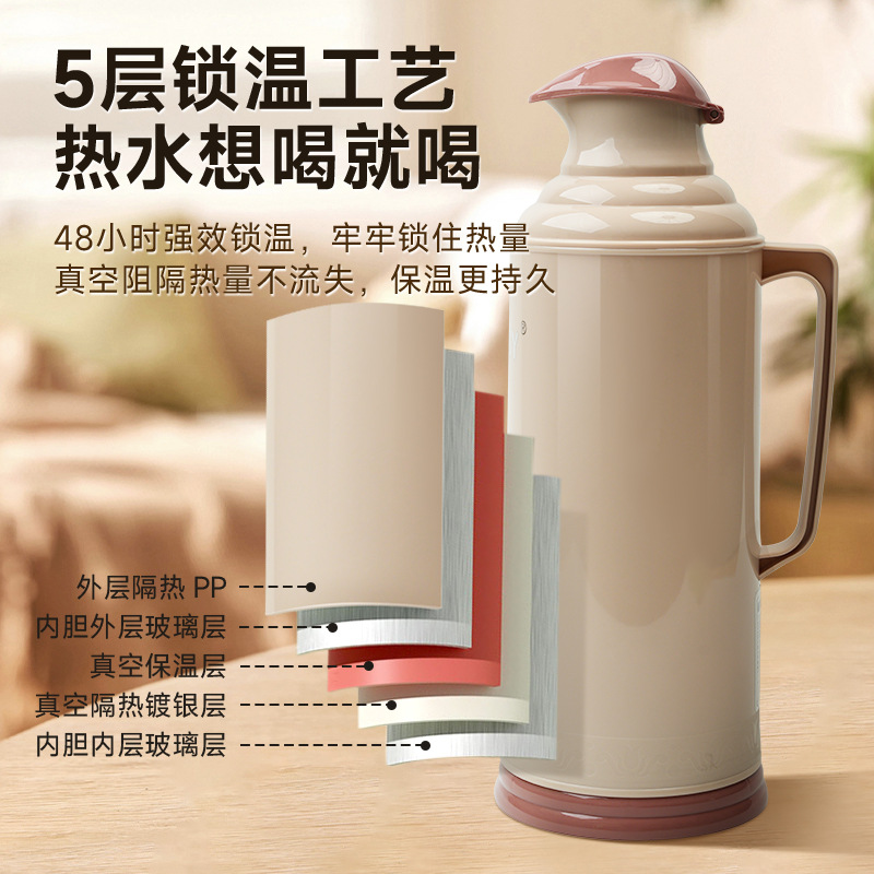 Термос Jielika с вакуумной изоляцией, стеклянный, в старинном стиле, для студентов и дома, 2 литра