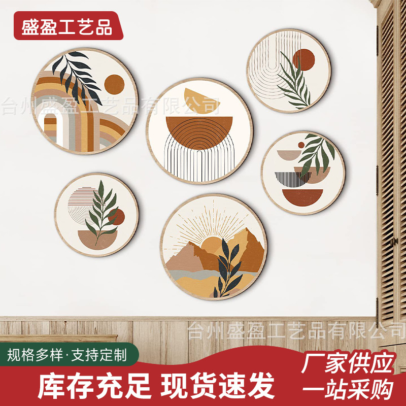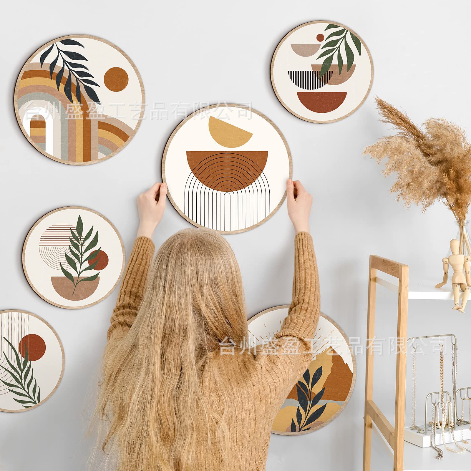 Набор из 6 деревянных настенных украшений для трансграничной торговли, круглые декоративные картины в богемном стиле, геометрические, в стиле фермерского дома, изделия из дерева, деревянные поделки