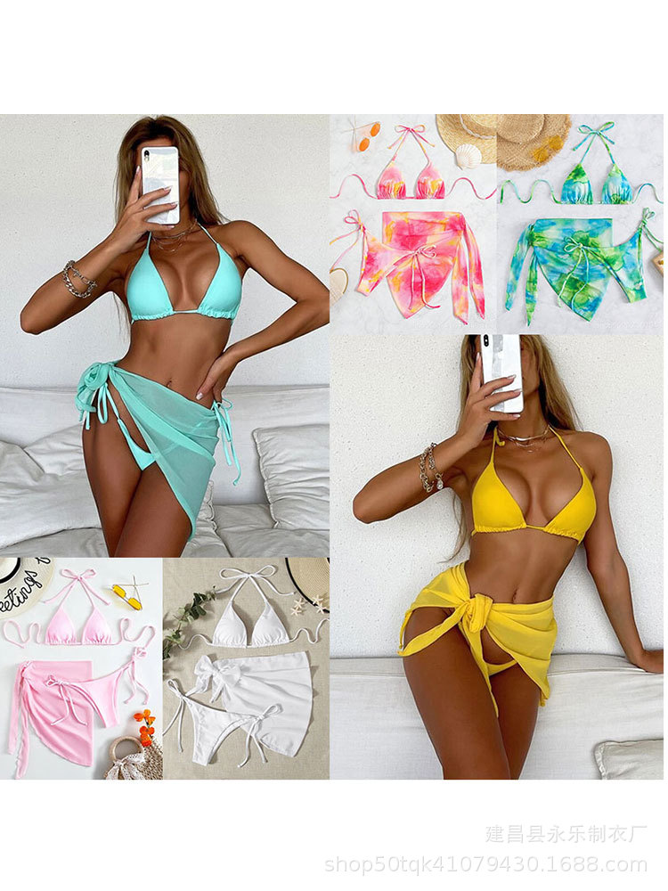 Главная страница > Европейский и американский внешнеторговый товар в наличии: новый сексуальный купальник-бикини из трех частей с треугольными чашками и бретелями, однотонный, коллекция 2025 года, AliExpress