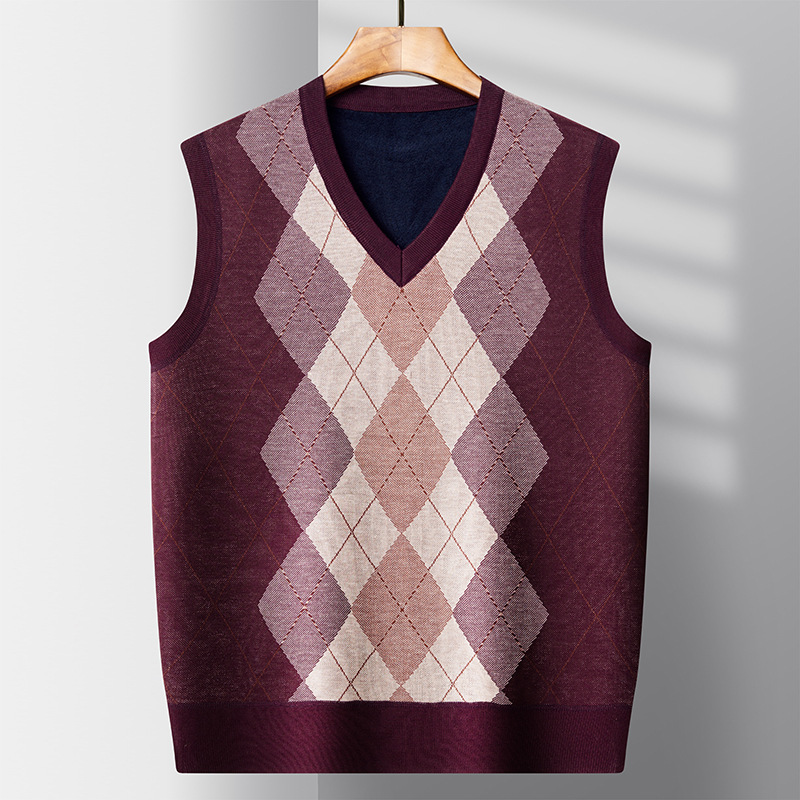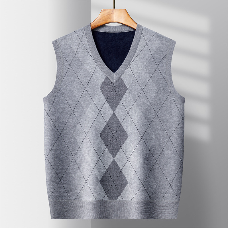 Главная страница > Осенний и зимний новый мужской вязаный свитер жилет среднего возраста колорит шерсть утолщенный повседневный жилет без рукавов мужской с v-образным вырезом