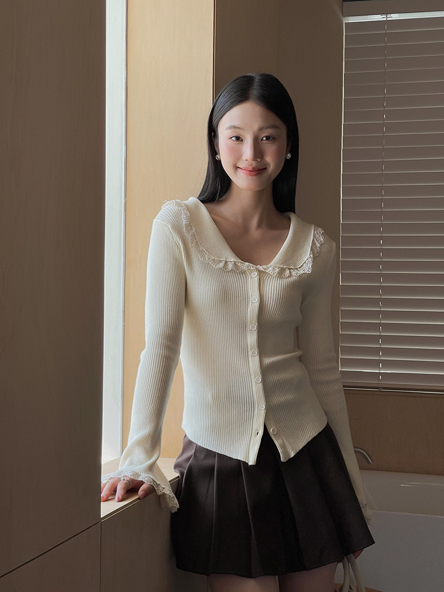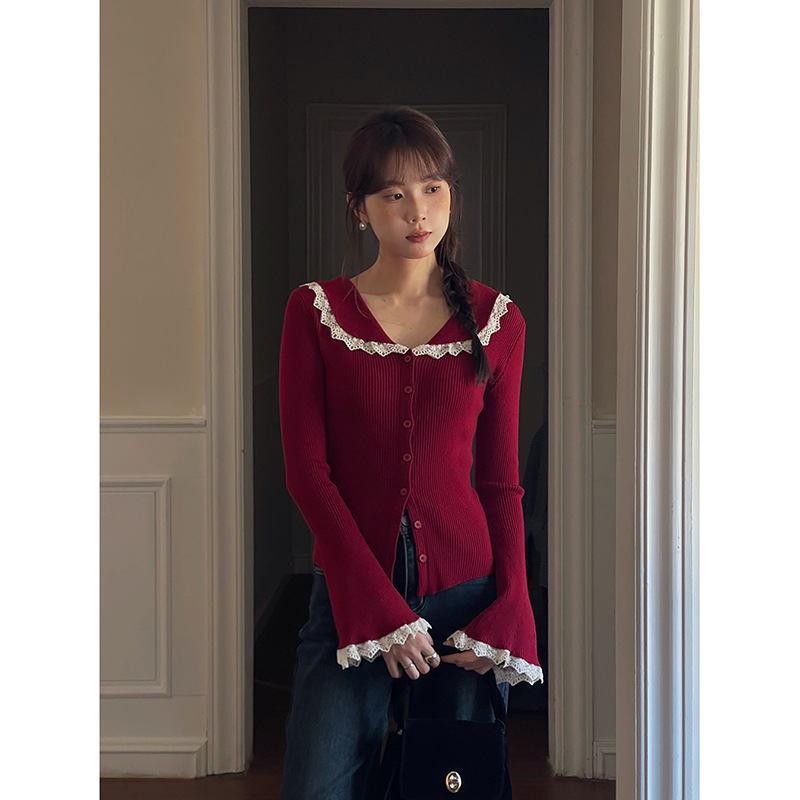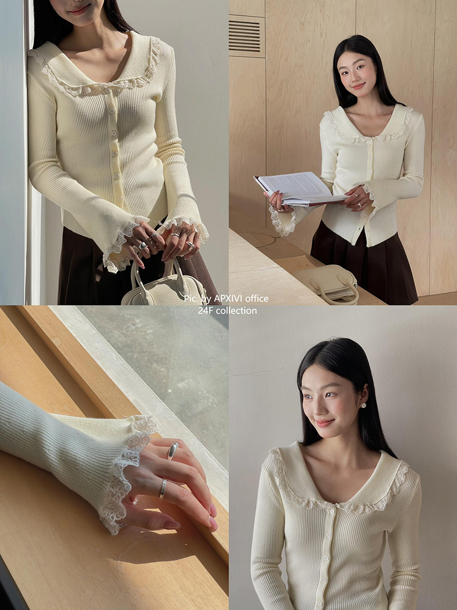 Главная страница > 【Moonlight Melody Heavy Craft Knitted 4 Colors】Geming French Retro Lace Winter Cardigan N257B