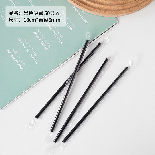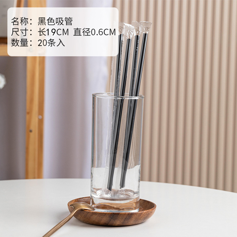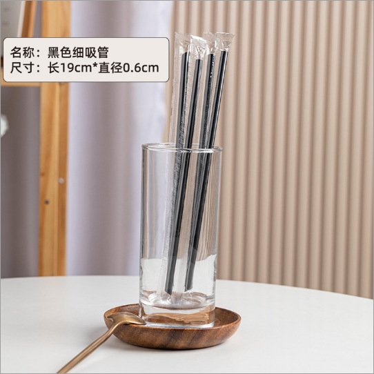 19 см * 6 мм тонкая соломинка черная (10 шт.)