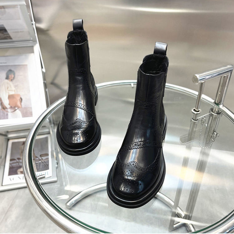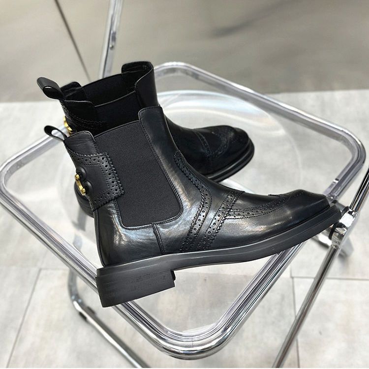 Главная страница > Ботинки Челси Женские 2023 Европа Весна и осень Новые лакированные ботинки Martin на плоской подошве в стиле ретро с гусиной головой из воловьей кожи