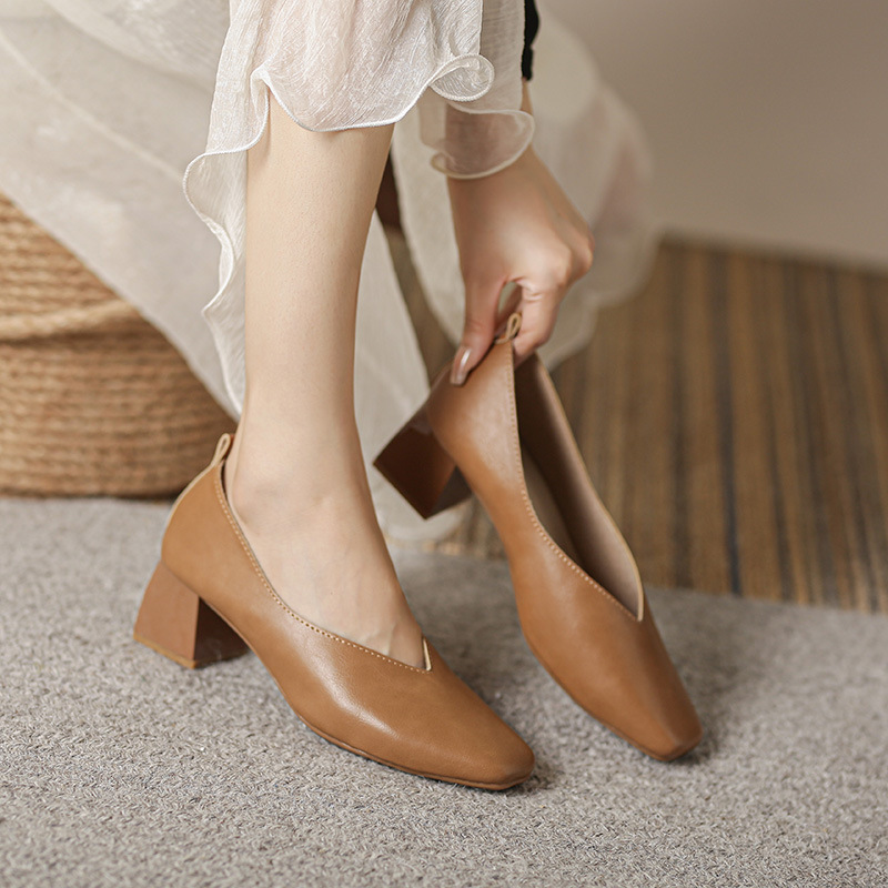Главная страница > Женские одиночные туфли в стиле позднего вечера, женская обувь, 2023 Новые взрывы, пригородные туфли из мягкой кожи на квадратном высоком каблуке, молочные туфли в стиле ретро
