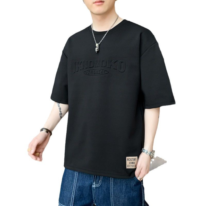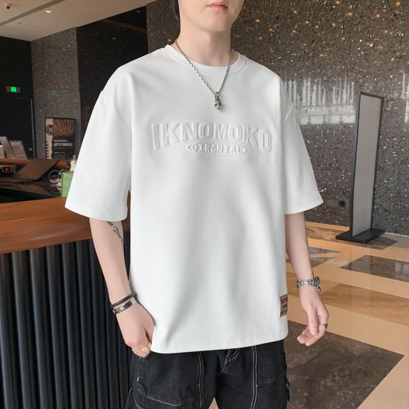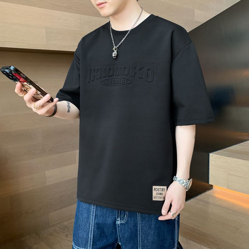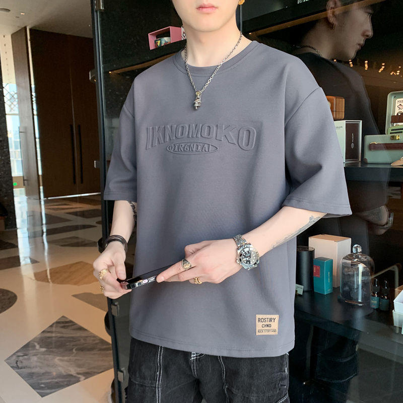 Главная страница > Летняя мужская футболка с короткими рукавами, новая однотонная футболка с круглым вырезом и половиной рукавов, молодежная повседневная универсальная модная брендовая футболка