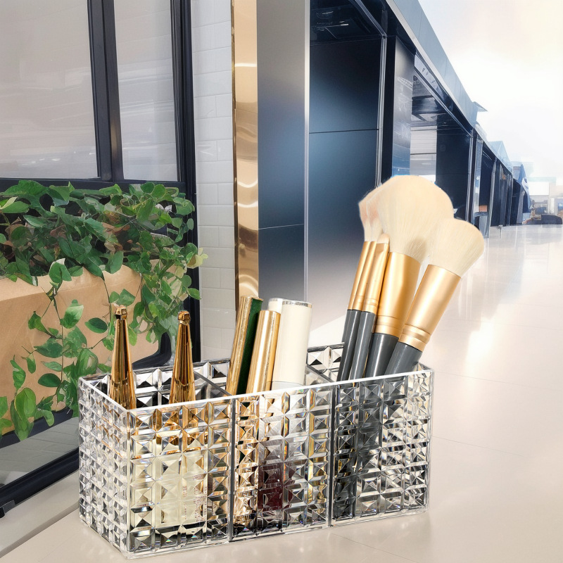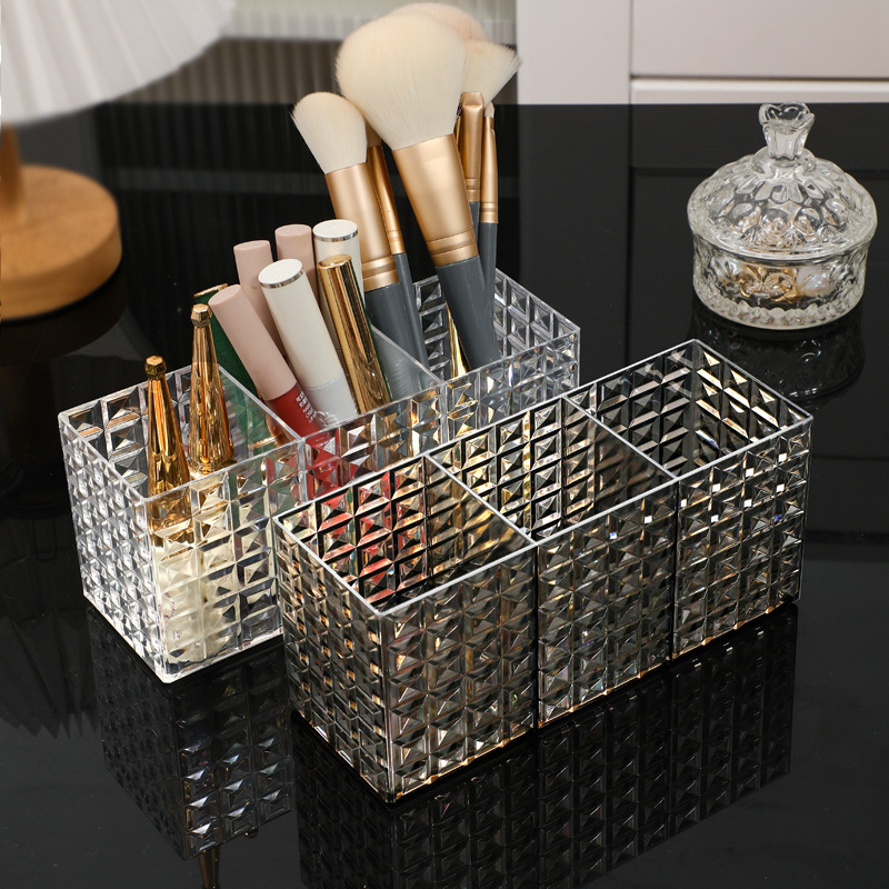 Студенческий настольный органайзер для хранения косметических кистей, помады, карандашей для бровей, ручек и канцелярских принадлежностей из акрила с высокой эстетической ценностью.