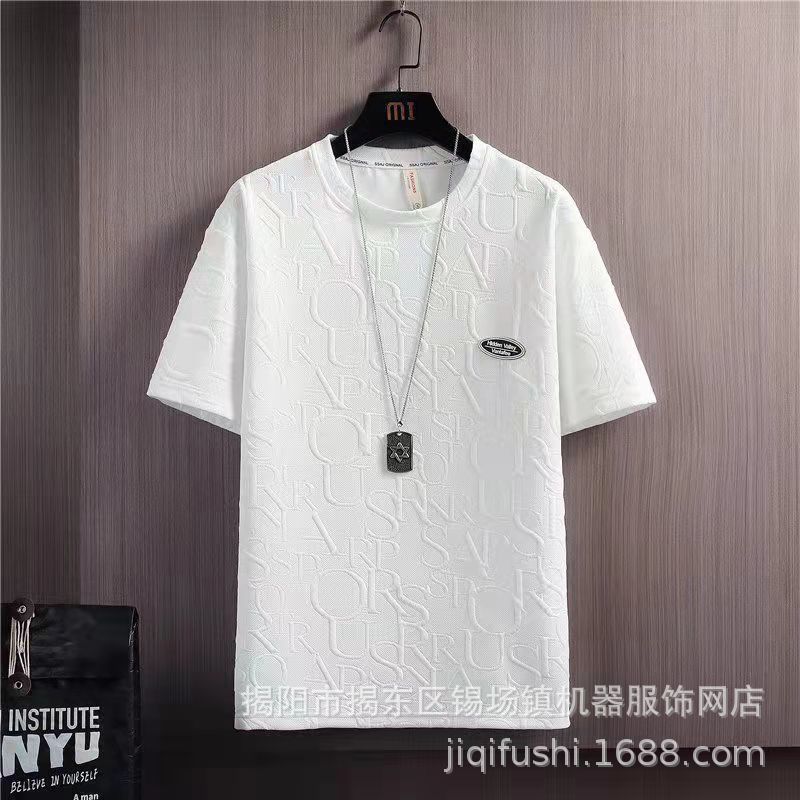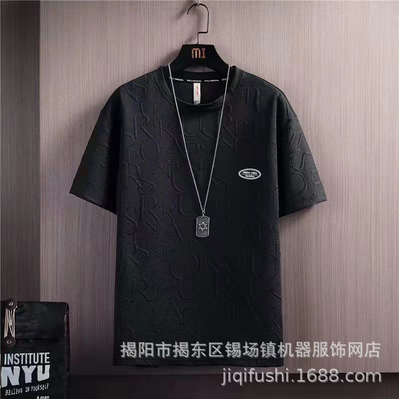 Главная страница > Летний костюм, Мужская модная универсальная однотонная Повседневная футболка с короткими рукавами, вафельный топ в Корейском стиле, модные брендовые Брюки пяти длин