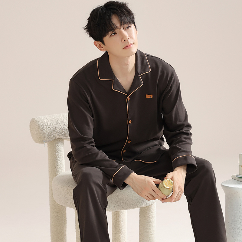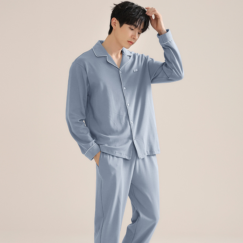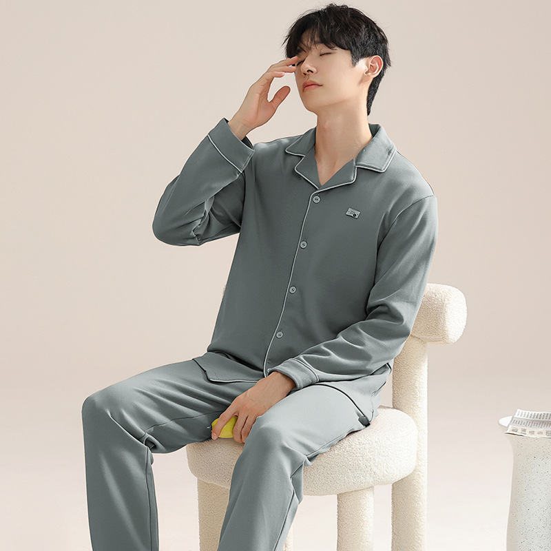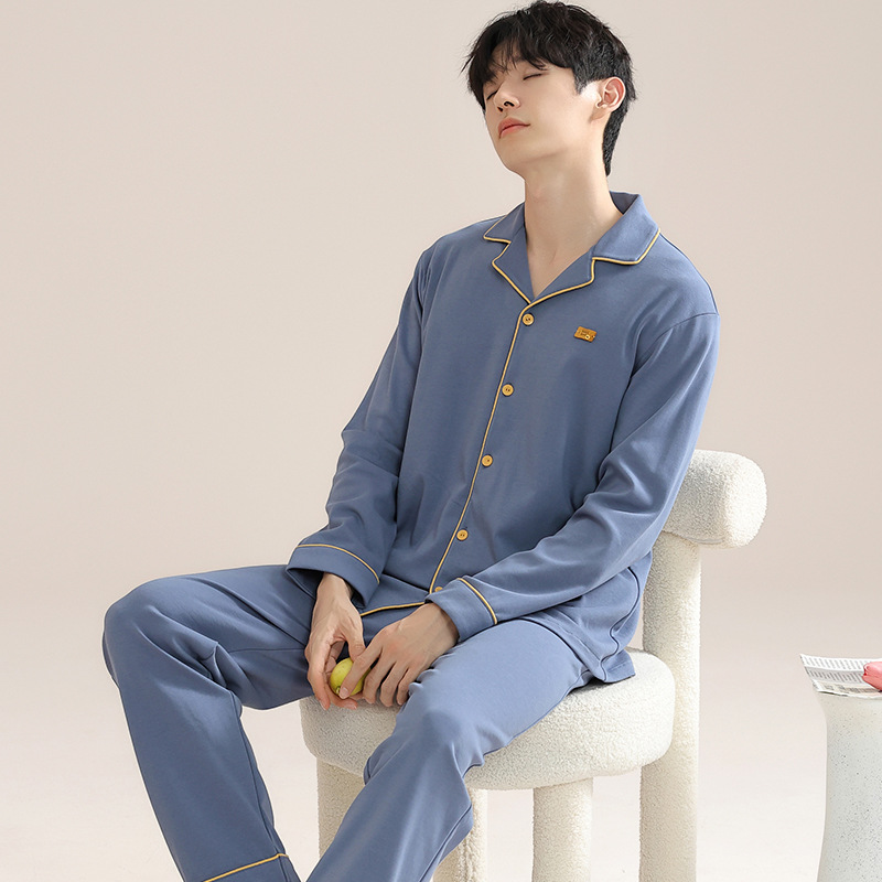 Главная страница > Пижама хлопчатобумажная мужская осенняя домашняя одежда с длинными рукавами может носить отворот