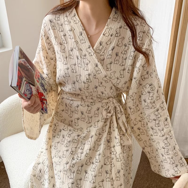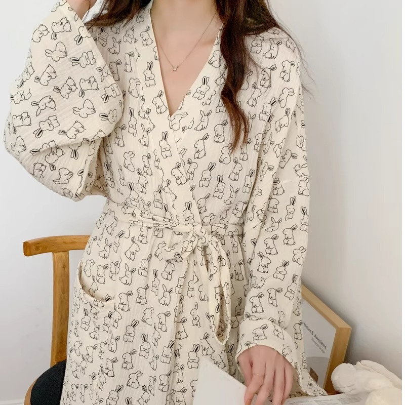 Главная страница > Мультфильм сладкий милый маленький кролик халат ночная юбка пижама женская весна и осень 2025 года
