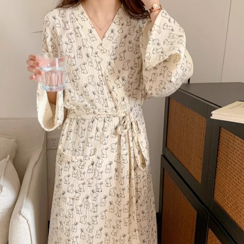 Мультфильм сладкий милый маленький кролик халат ночная юбка пижама женская весна и осень 2025 года