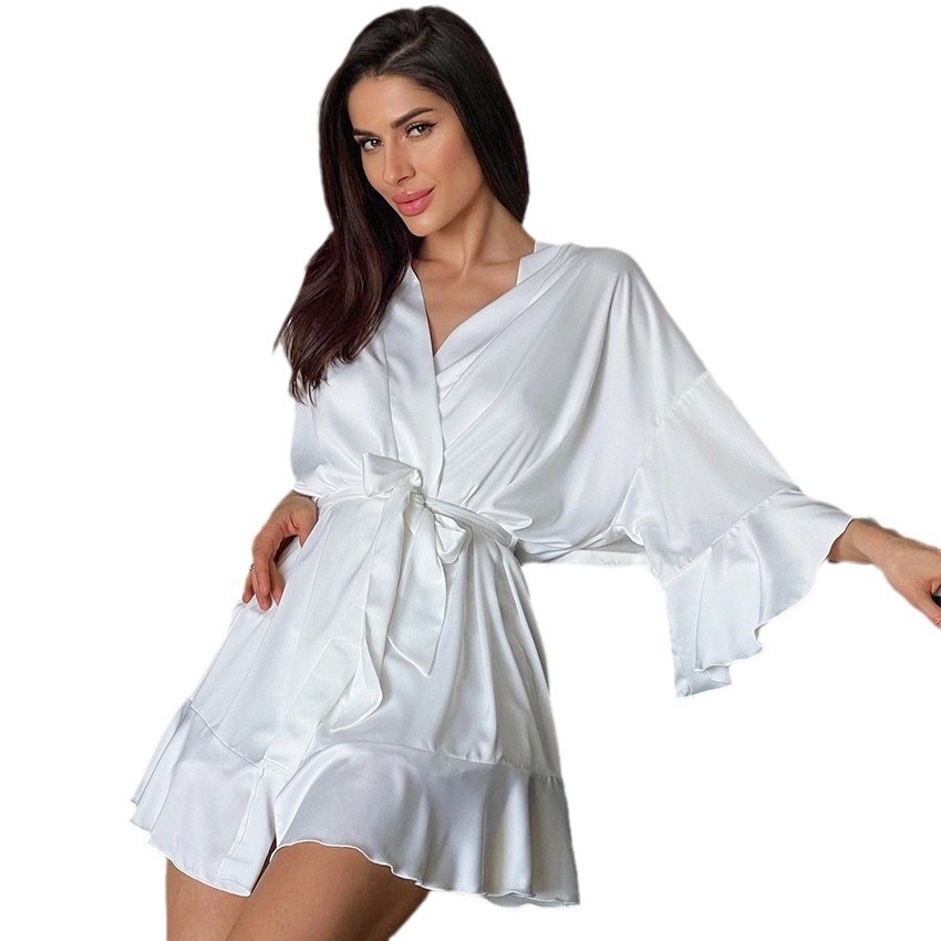 Новая европейская и американская эротическая пижама симулирована шелковая сексуальная кружевная рубашка большого размера кардиган утренний халат трансграничное одобрение