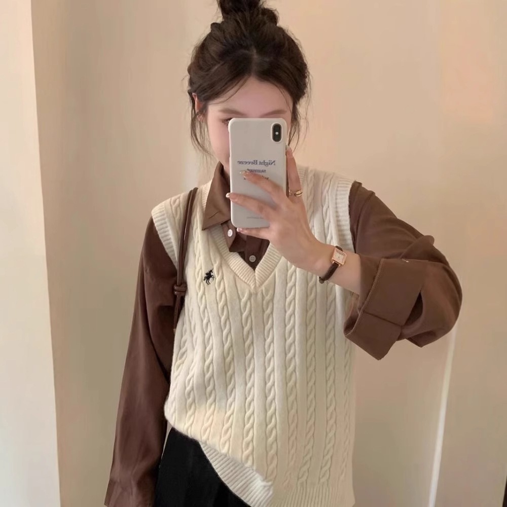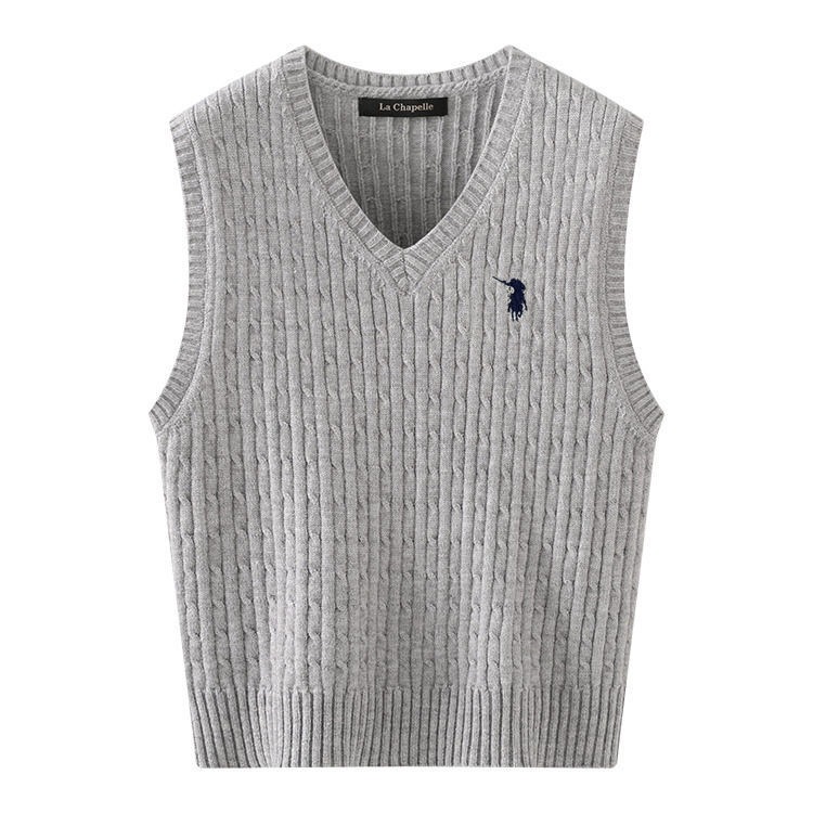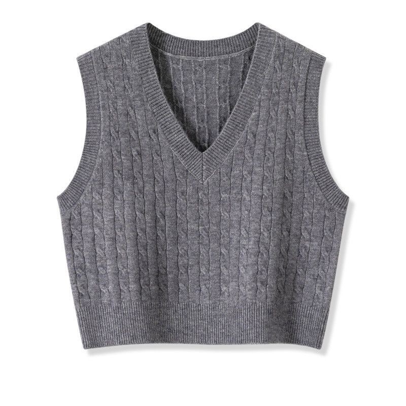 Главная страница > Серый вязаный жилет с v-образным вырезом и вышивкой для женщин весной и осенью, универсальный свободный многослойный свитер-жилет для маленьких людей