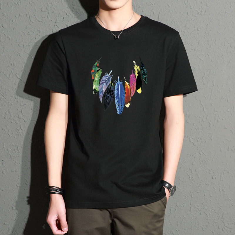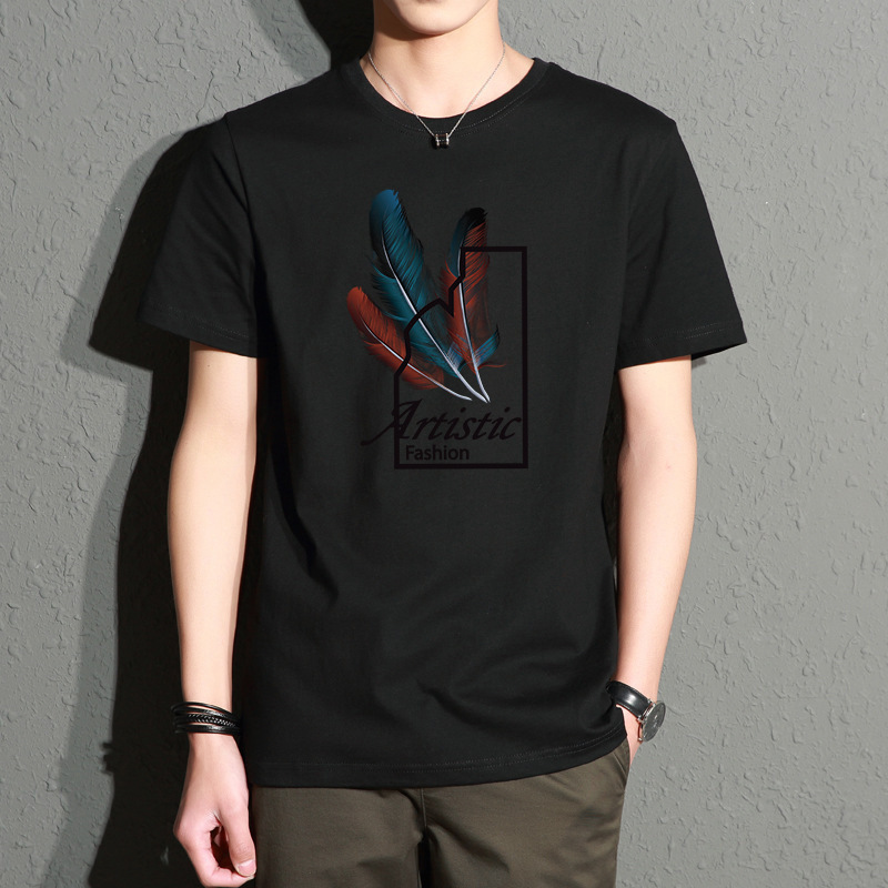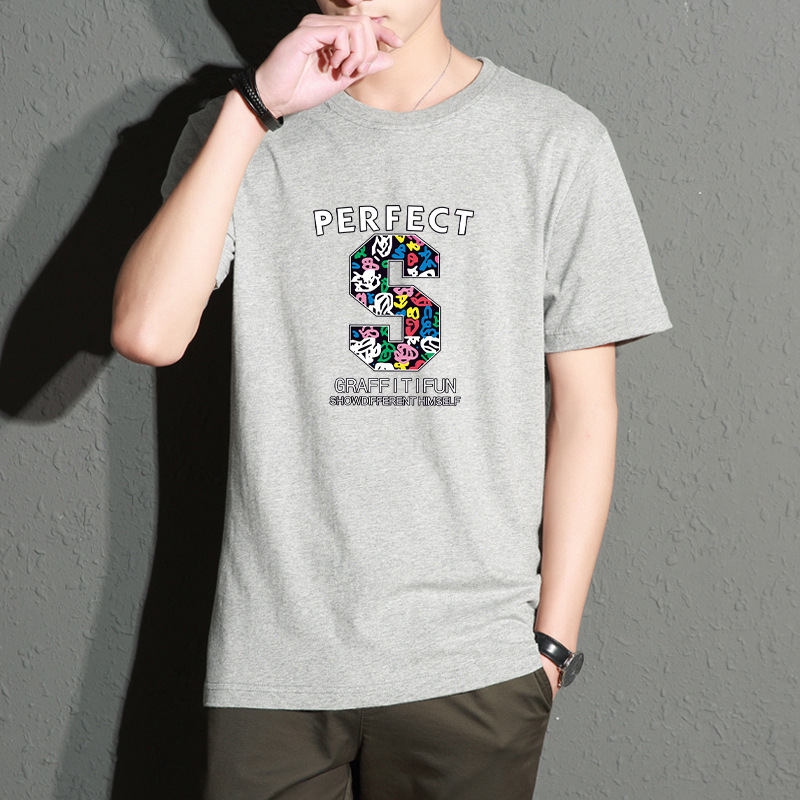 Главная страница > Мужская футболка с короткими рукавами, летняя облегающая футболка с круглым вырезом большого размера в корейском стиле, модная молодежная футболка с принтом