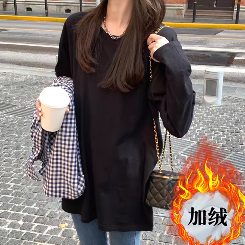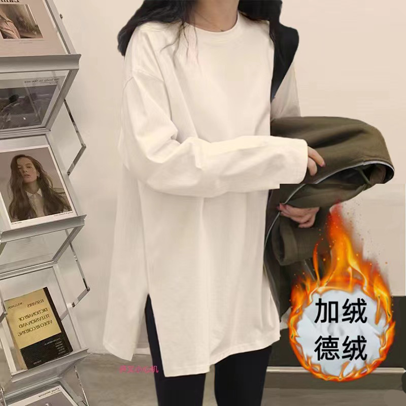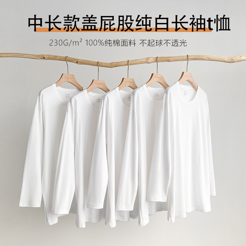 Главная страница > Женская хлопковая белая футболка с длинным рукавом, осенняя модель 2025 года, свободного кроя, средней длины, с круглым вырезом и закрывающимся низом.