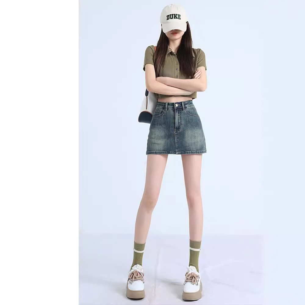 2025 весна и лето ретро горячая девушка джинсовая юбка