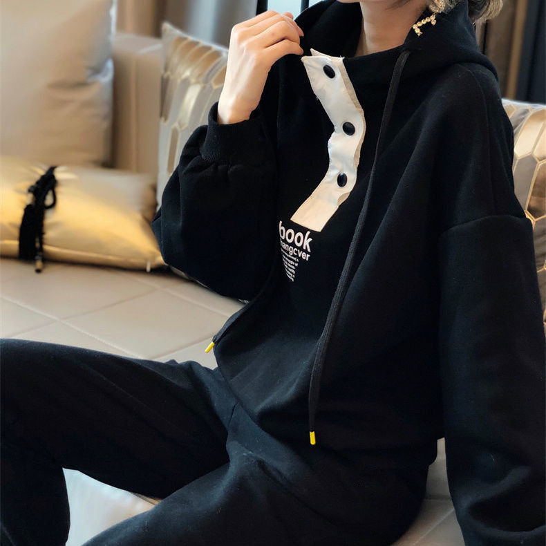 Главная страница > Свободный Повседневный Спортивный костюм с капюшоном большого размера 200 кг, женский осенне-зимний Европейский и американский трансграничный модный свитер, костюм из двух частей
