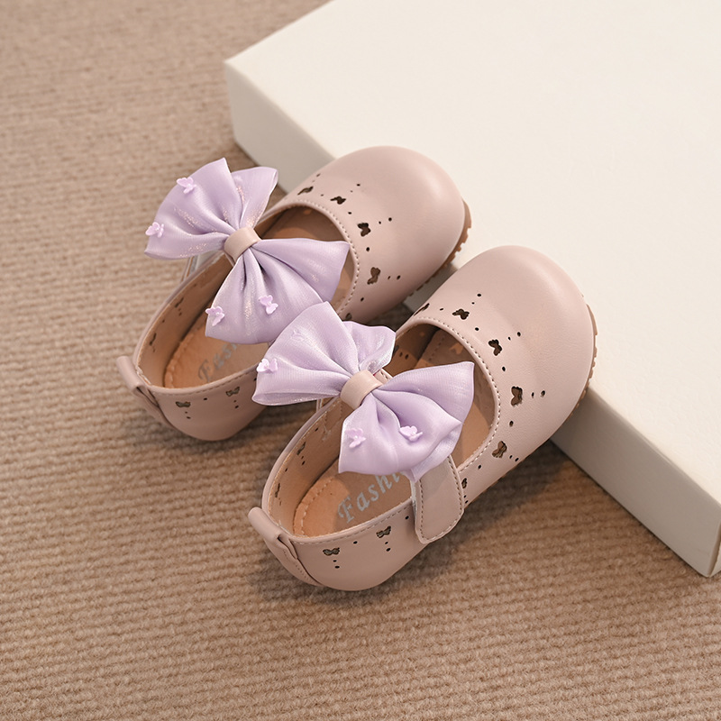 Детская обувь весной 2025 года маленькая девочка темперамент сладкая обувь с бантом принцессы корейская мода универсальный женский одиночный ботинок
