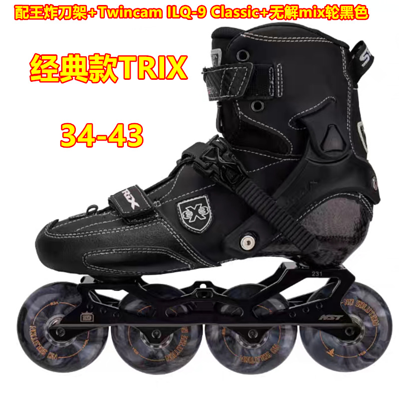 Черная цельная обувь с неглубоким держателем ножа Софи + Twincam ILQ-9 Classic + неплоссивное микс колесо белого цвета