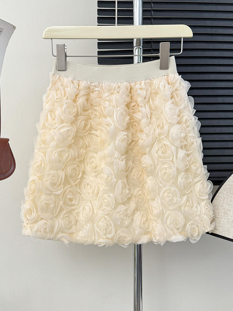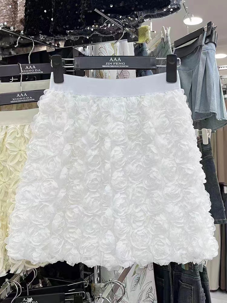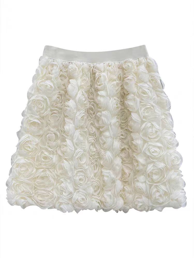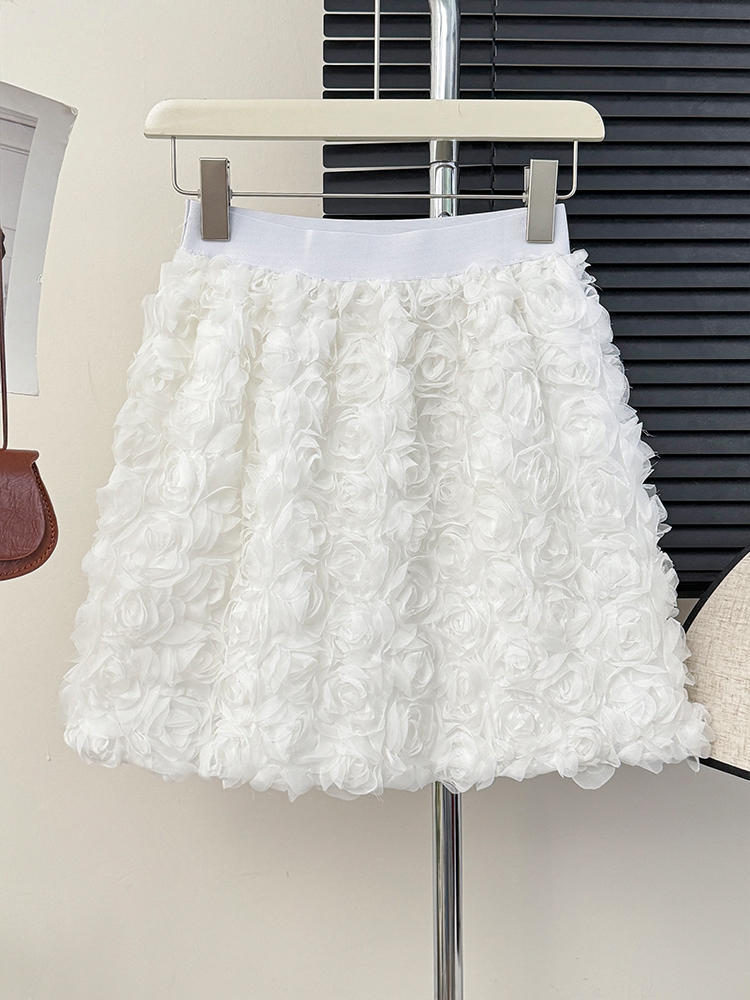 Главная страница > Корейская элегантная белая женская короткая юбка с высокой талией и стерео розами, милая, уменьшающая возраст, облегающая юбка трапециевидной формы