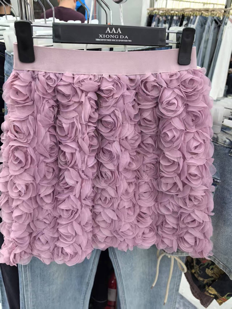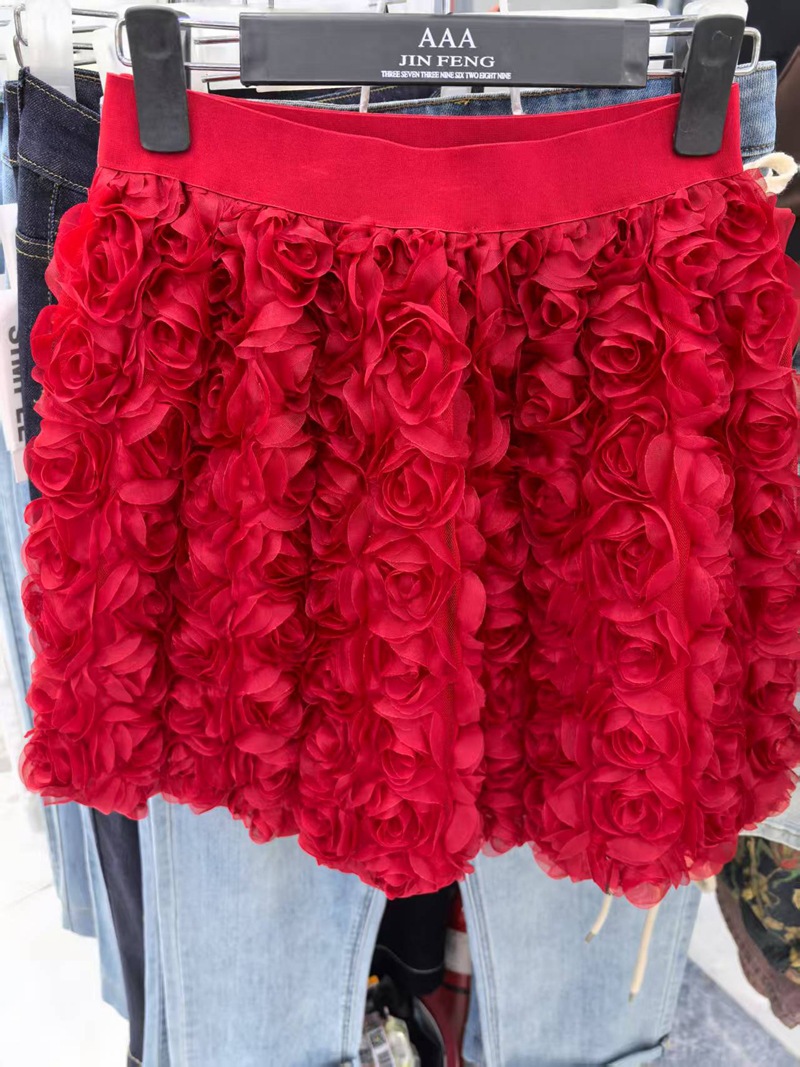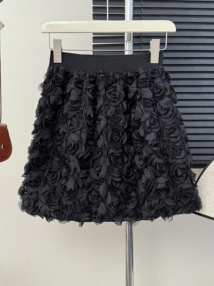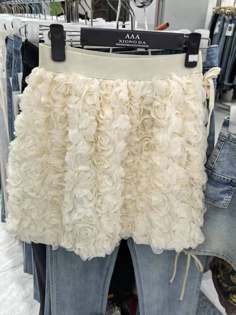 Главная страница > Корейская элегантная белая женская короткая юбка с высокой талией и стерео розами, милая, уменьшающая возраст, облегающая юбка трапециевидной формы