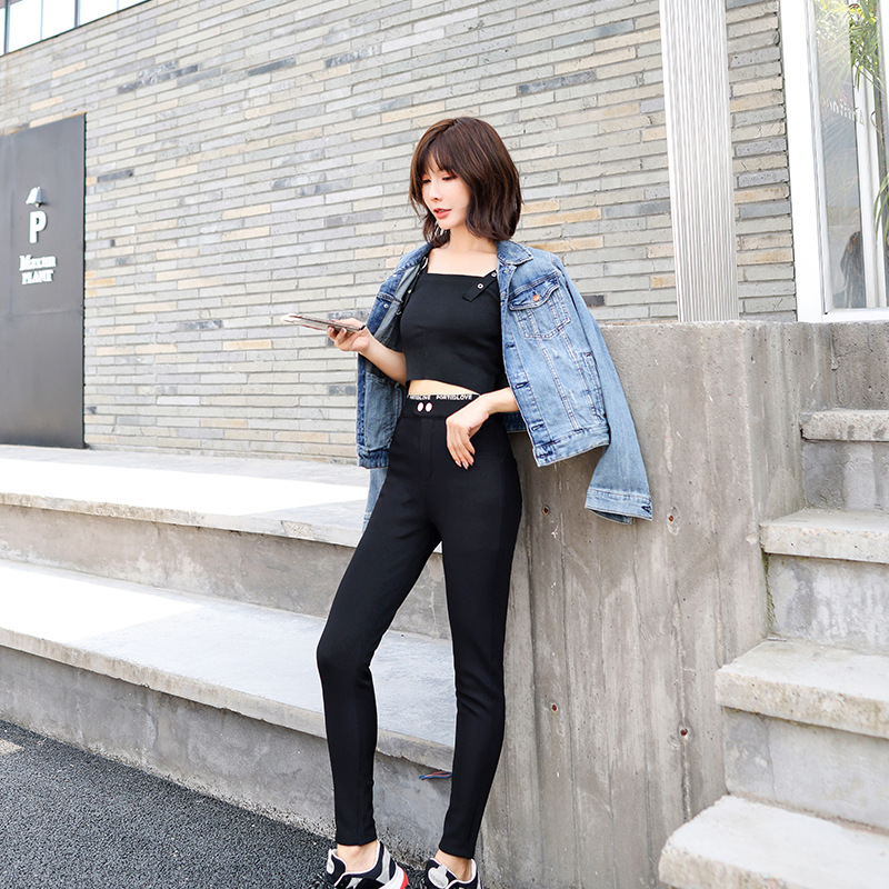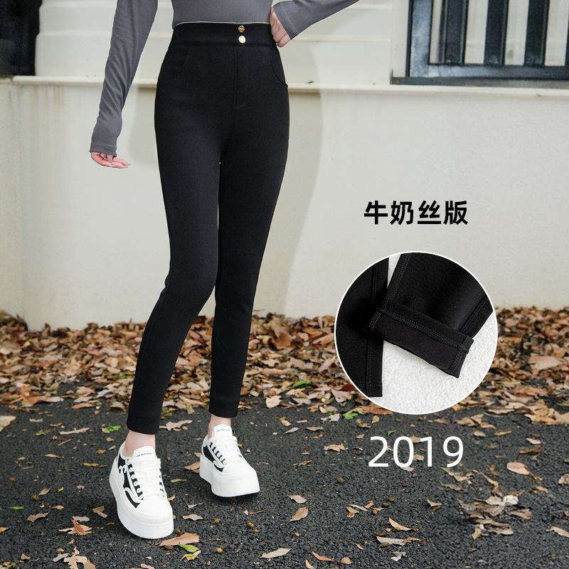 Главная страница > Черные осенне-зимние обтягивающие брюки-скинни с высокой талией, из эластичной ткани с флисовой подкладкой, для женщин.