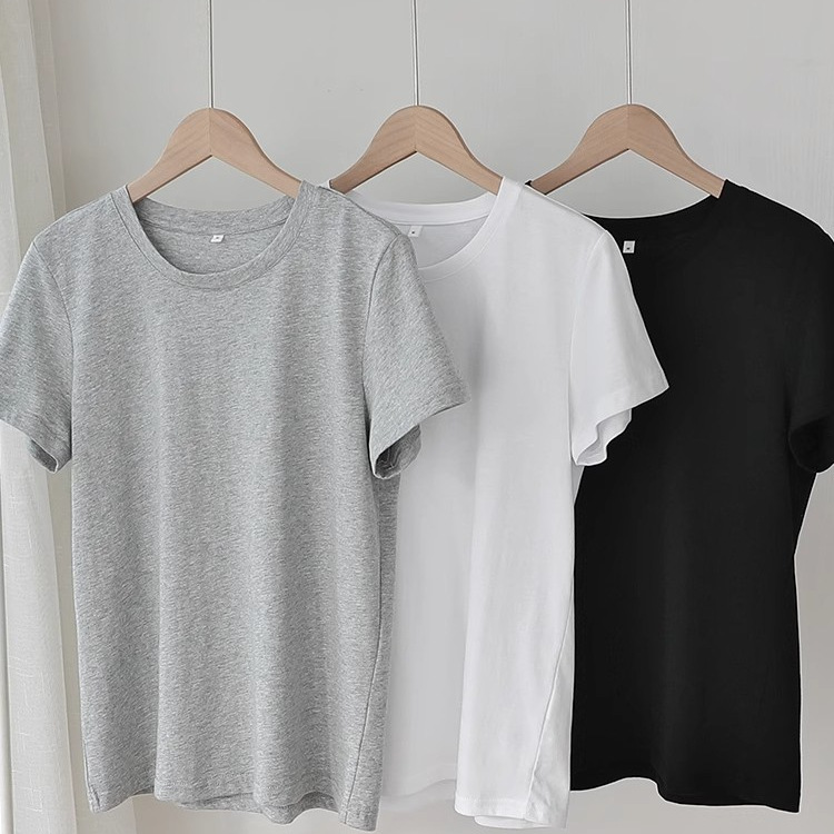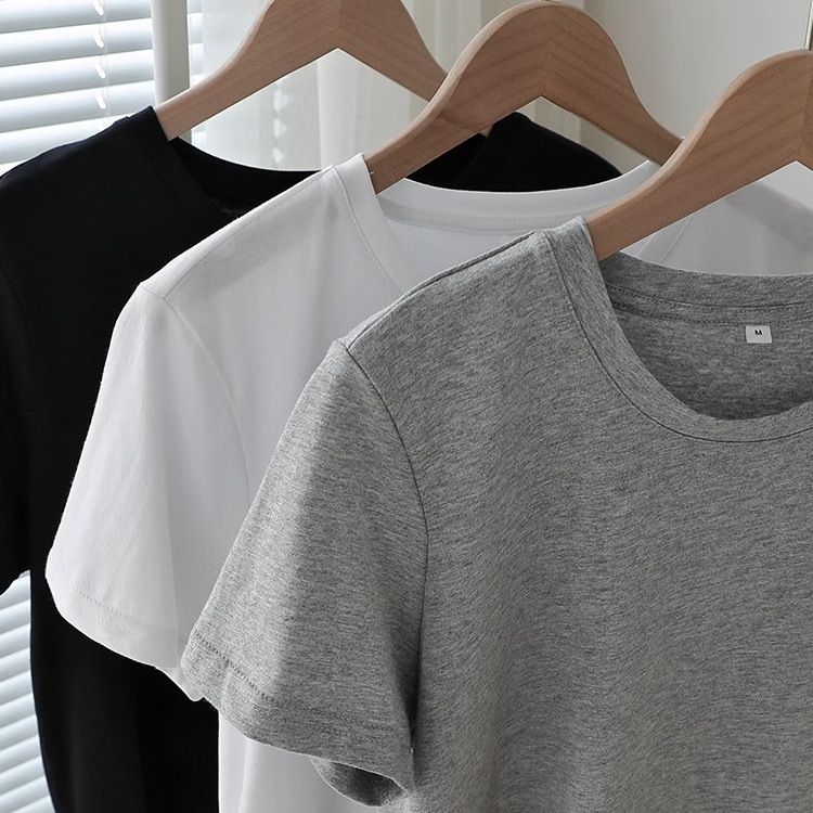 Главная страница > Белая футболка из чистого хлопка, женская футболка с короткими рукавами, лето 2025, новая облегающая рубашка с тонким низом и однотонным топом для похудения