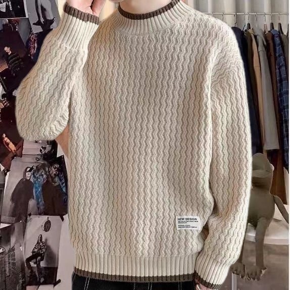 Главная страница > Свитер с полувысоким воротником пуловер мужской осень-зима 2024 дикий свободный теплый топ с модным свитером