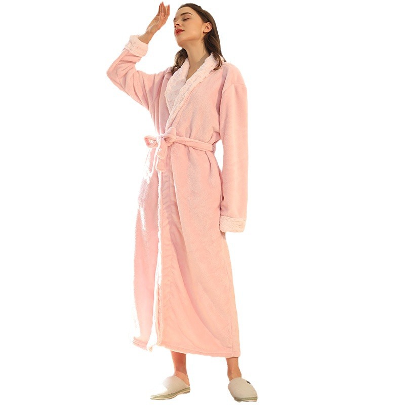 Главная страница > Фланелевая ночная рубашка женская зимняя европейского размера плюс утолщенный мужской халат из кораллового флиса с пушистым воротником для пары, осенне-зимний длинный
