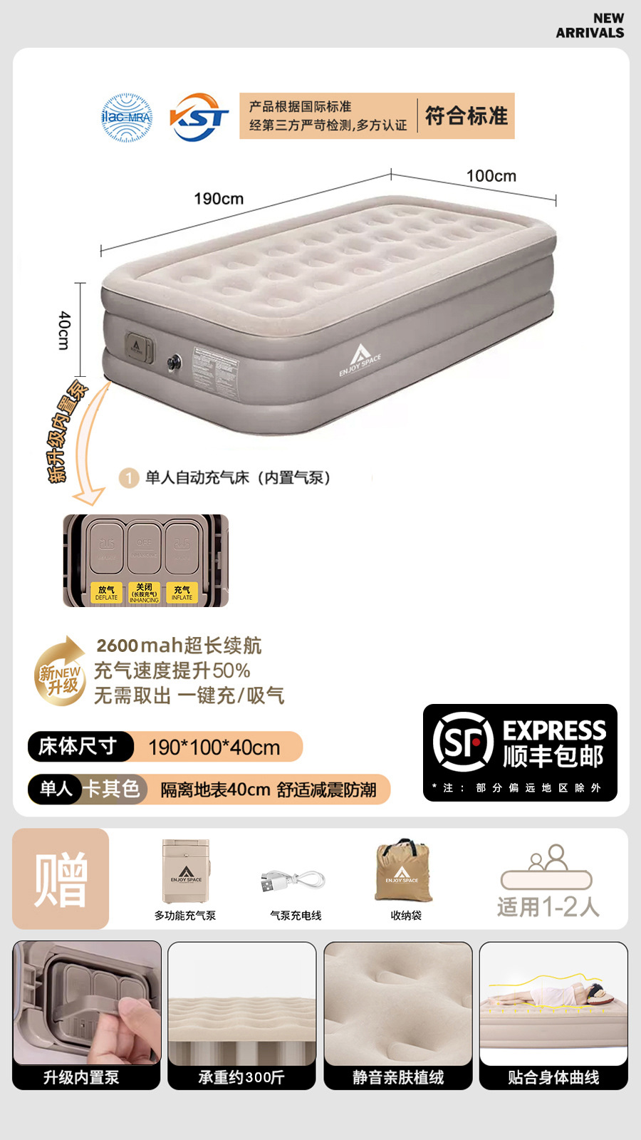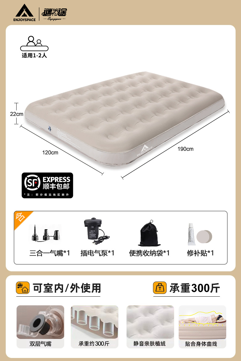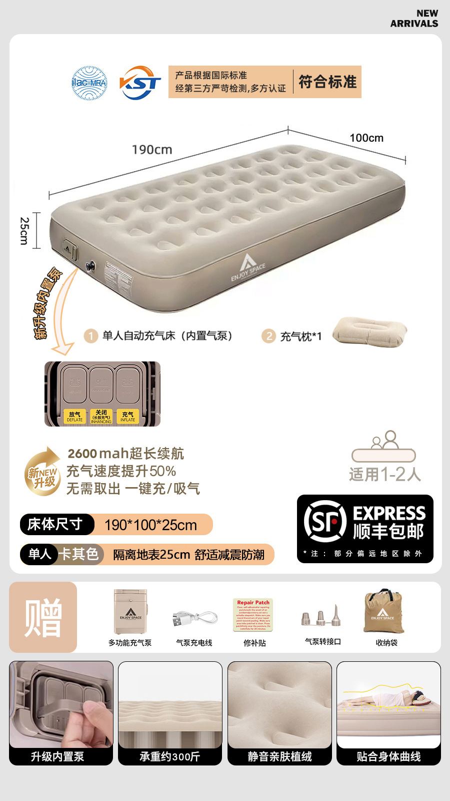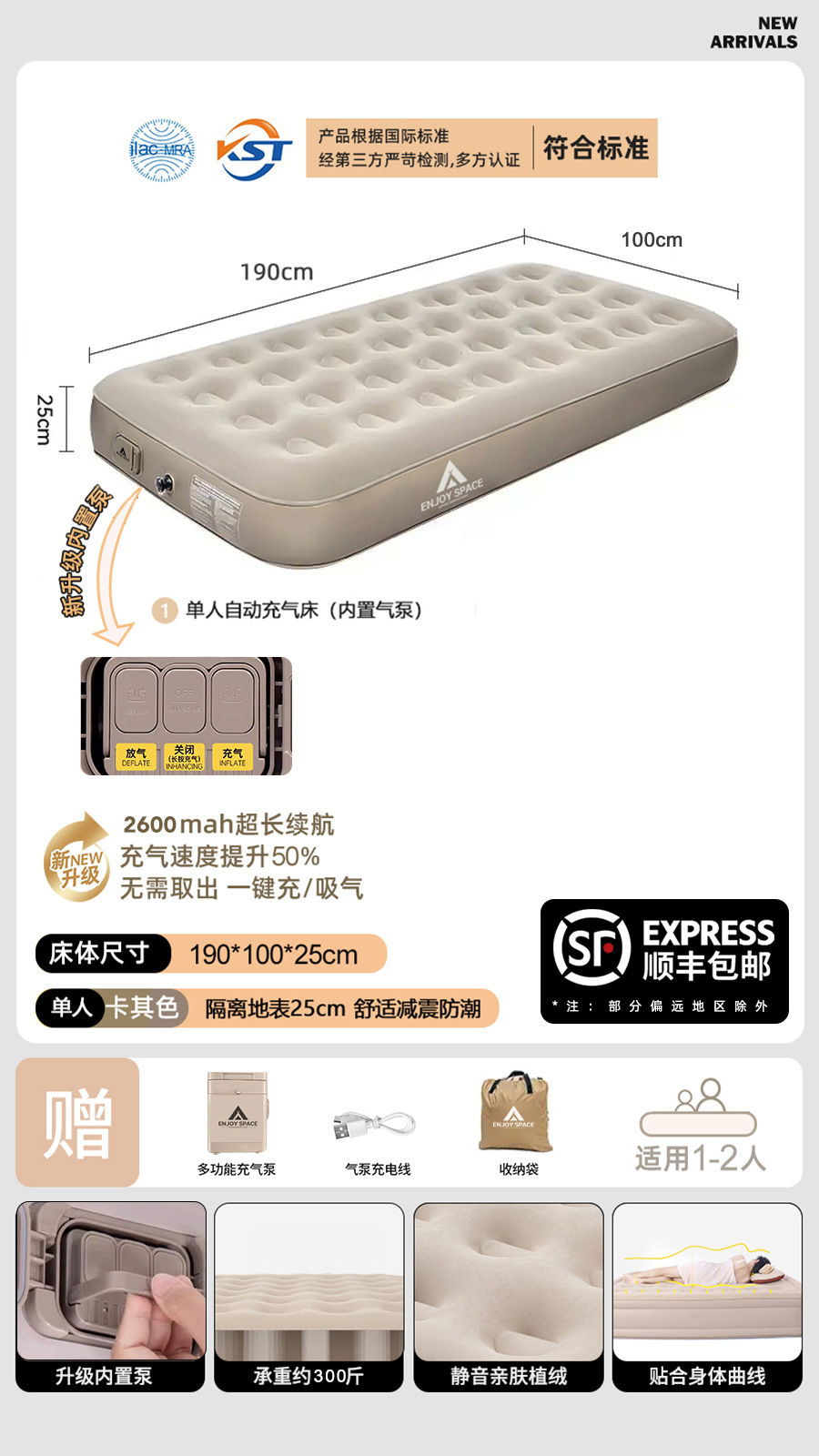 [190*99*25] Однофлотная флокированная кровать + встроенный электрический насос + надувная подушка (гарантия 1 год)