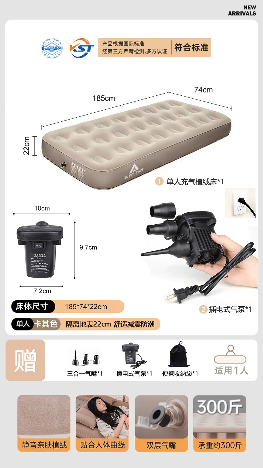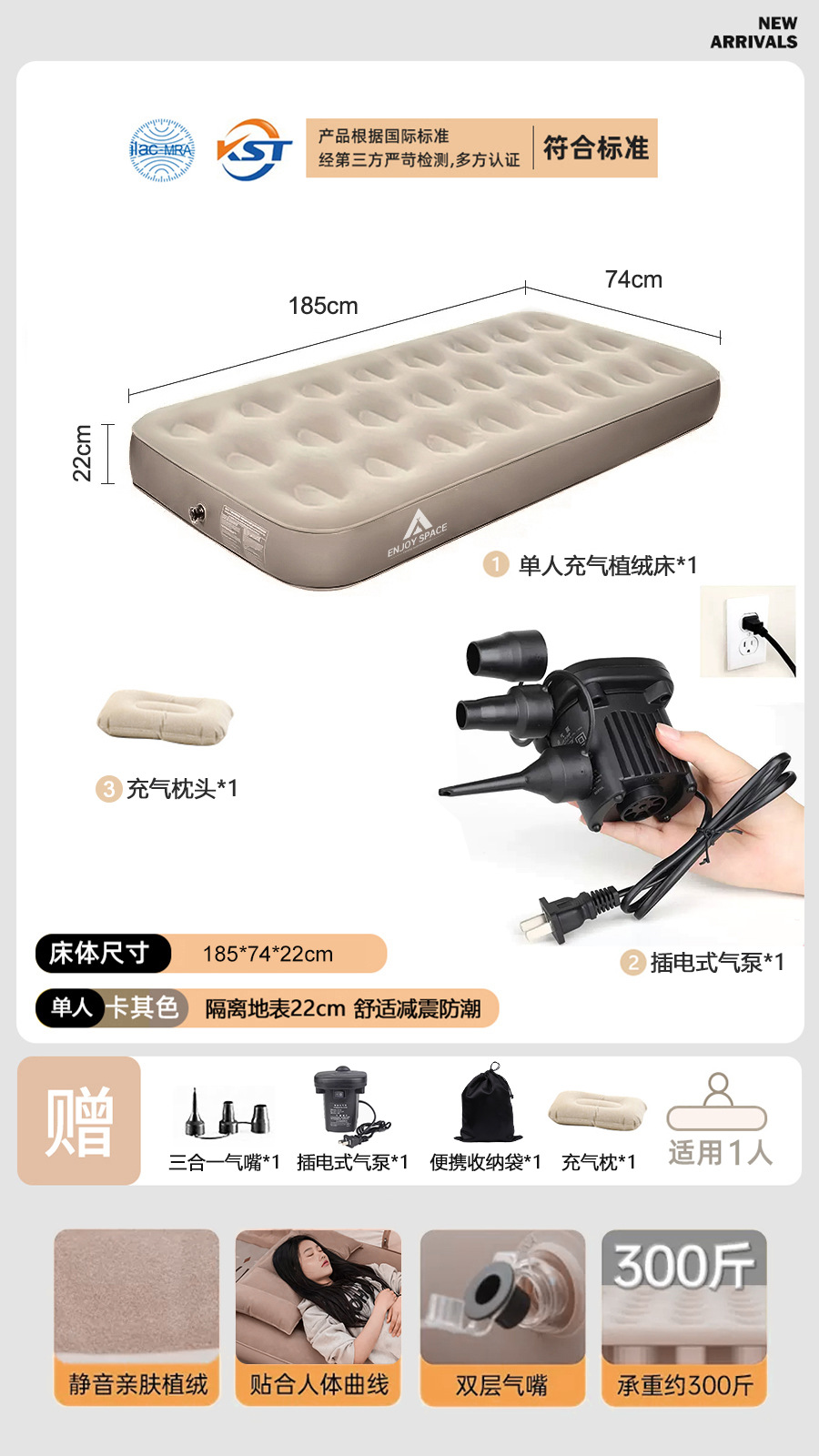 【185*74*22】Одинарная надувная флокирующая кровать + подключаемый внешний насос + сумка для хранения (гарантия 1 месяц)