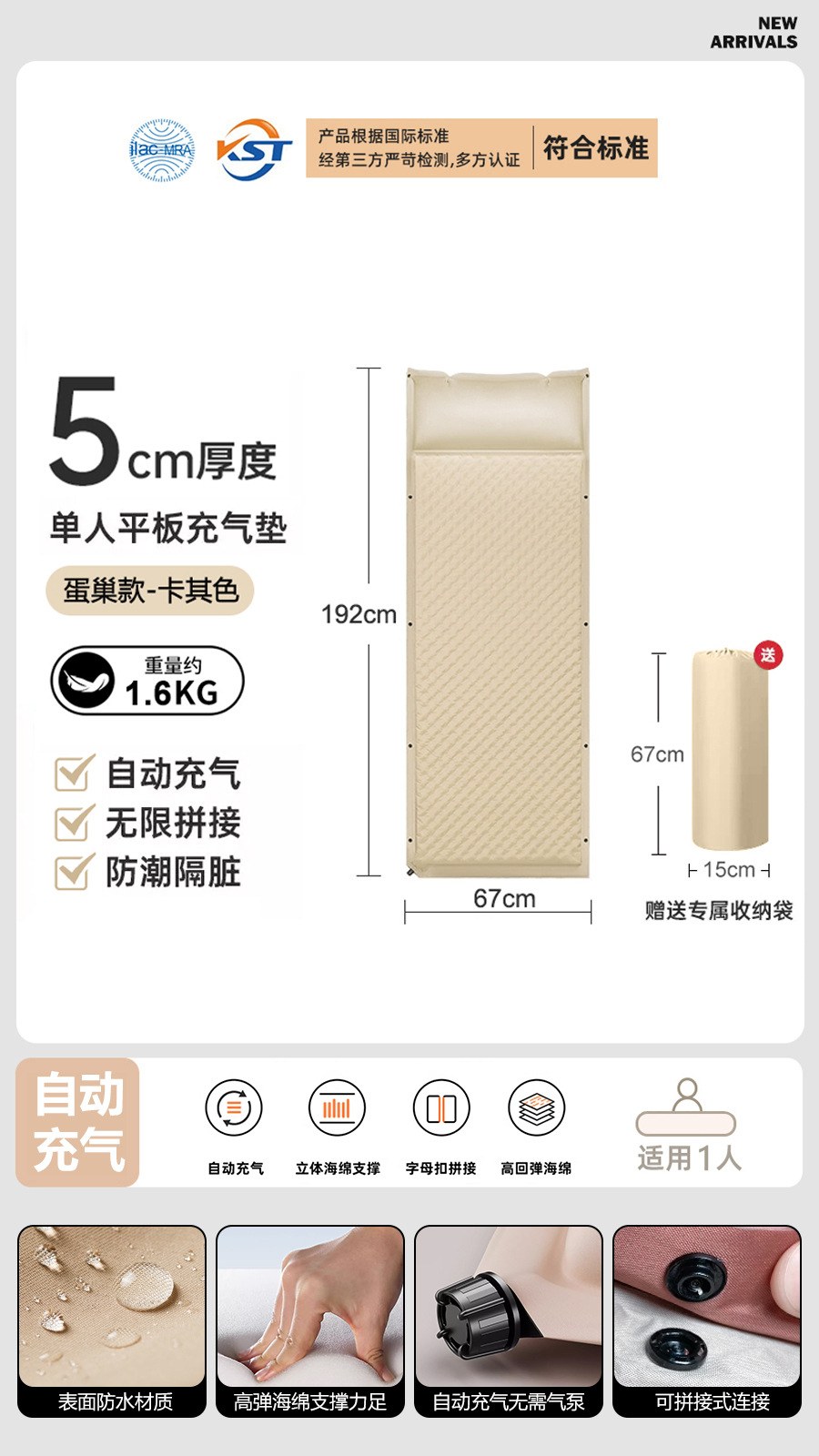 【192*67*5 см】Автоматический надувной коврик для одного человека (гарантия 1 год)