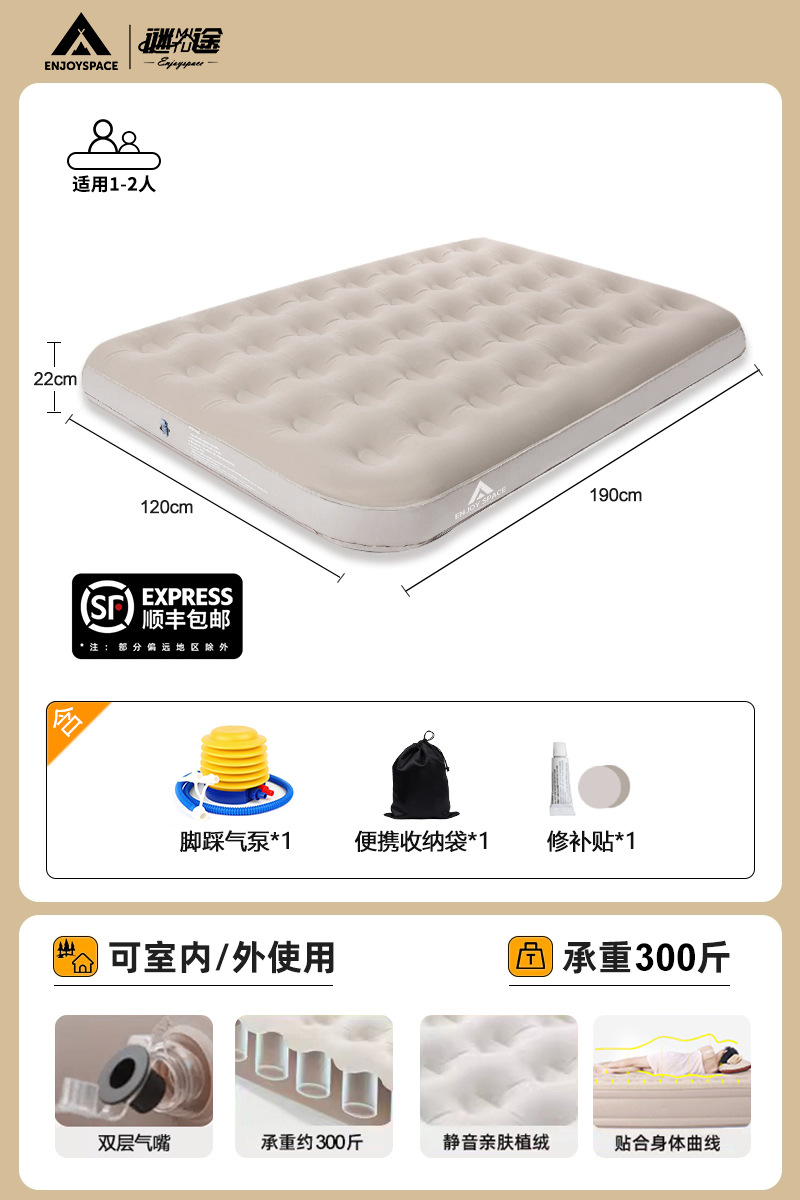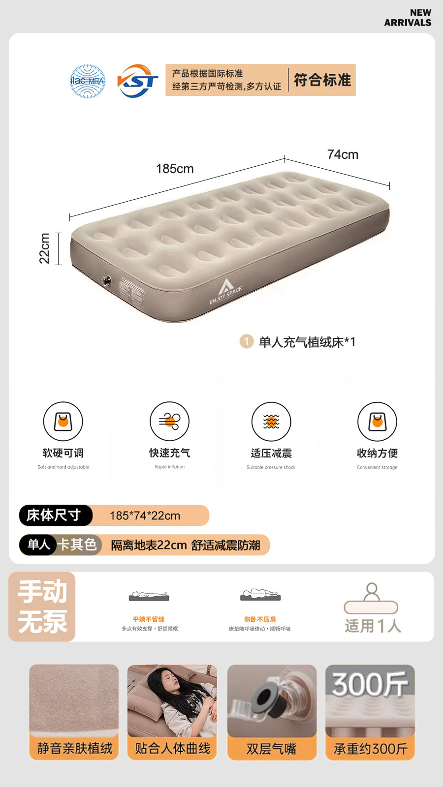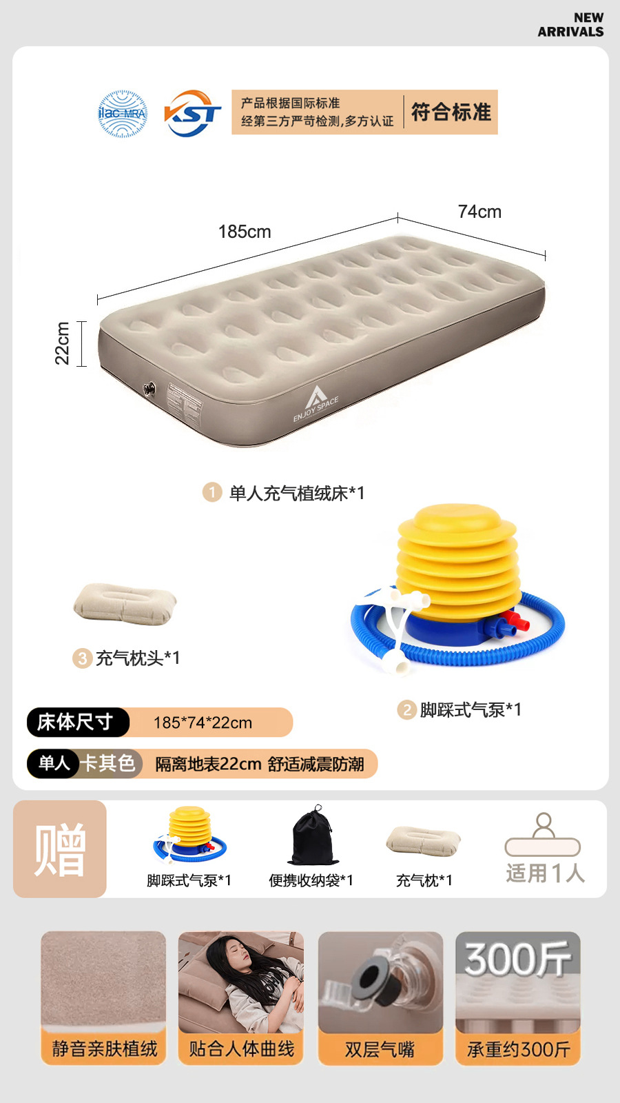 【185*74*22】Одинарная надувная флокирующая кровать + ножной насос + надувная подушка + сумка для хранения (гарантия 1 месяц)