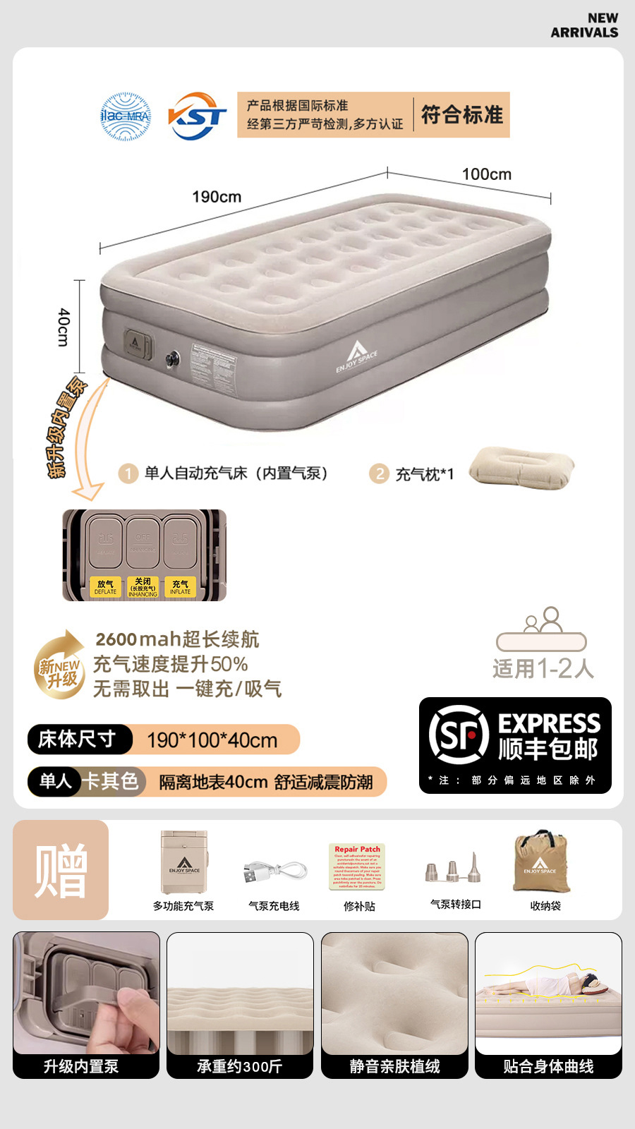 [190*99*40] Увеличенная флокирующая кровать для одного человека + встроенный электрический насос для хранения + надувная подушка (гарантия 1 год)