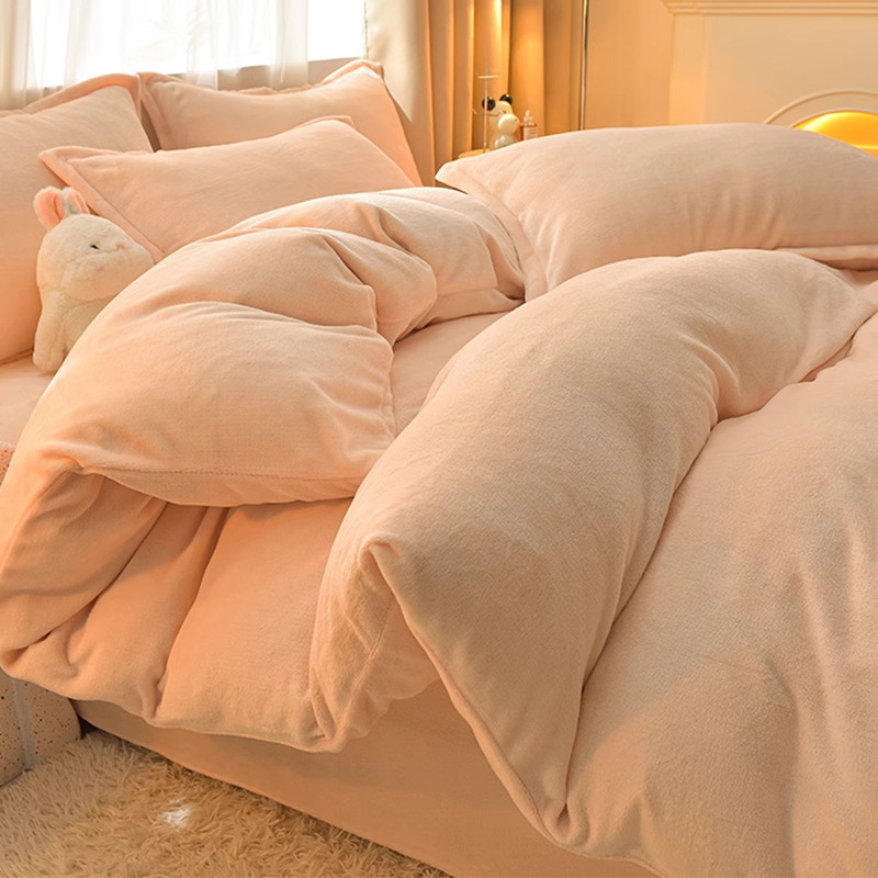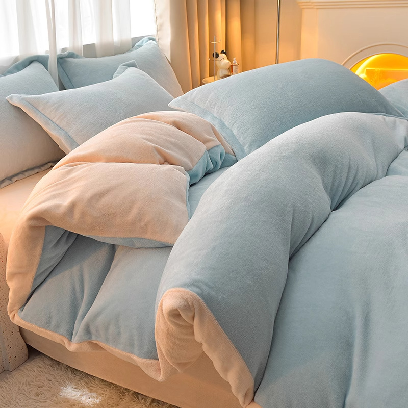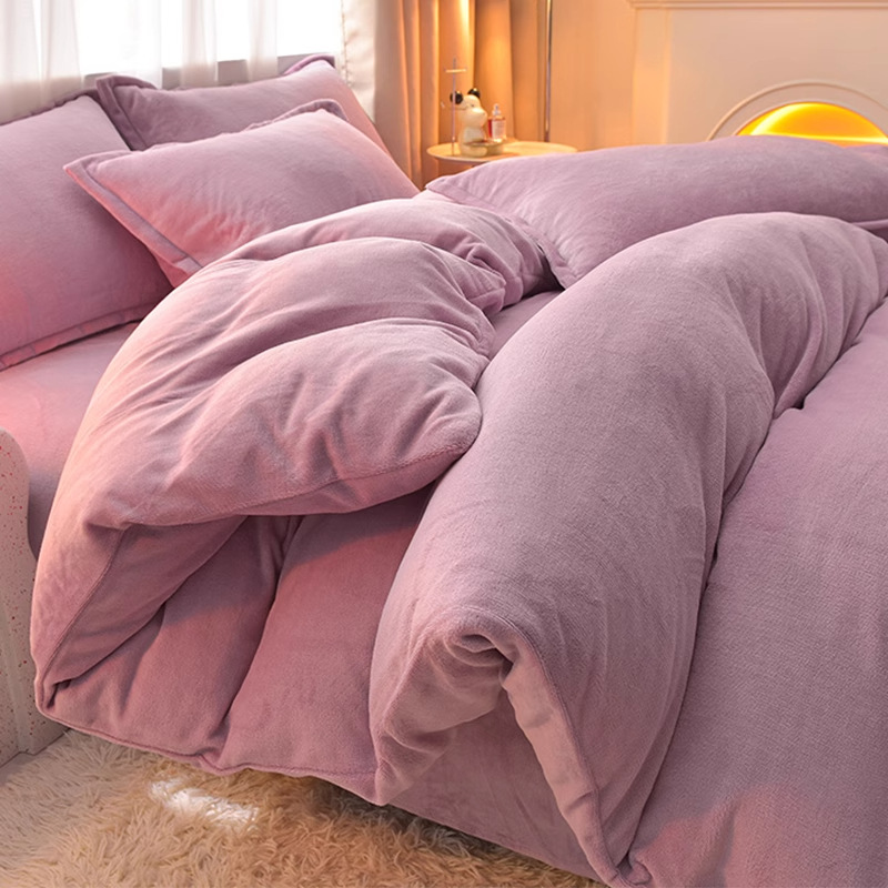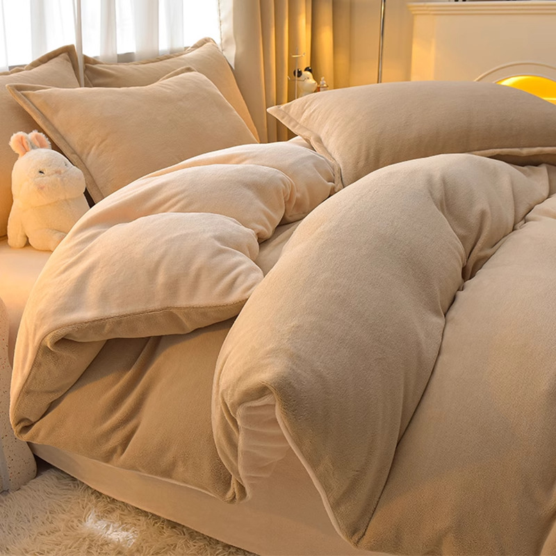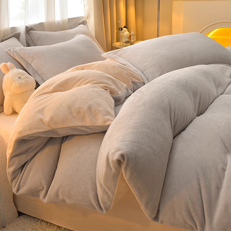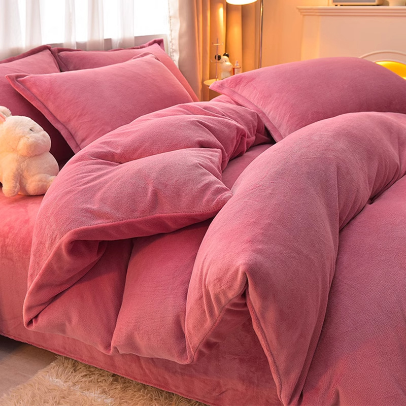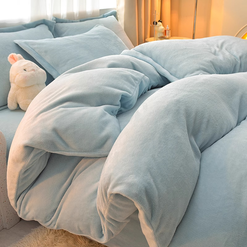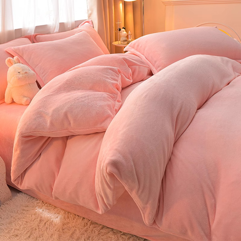 Главная страница > Молочный бархатный комплект из четырех предметов, однотонный зимний утолщенный студенческий общежитие, бархатный пододеяльник из трех предметов, наволочка, простыни, двусторонние, теплые
