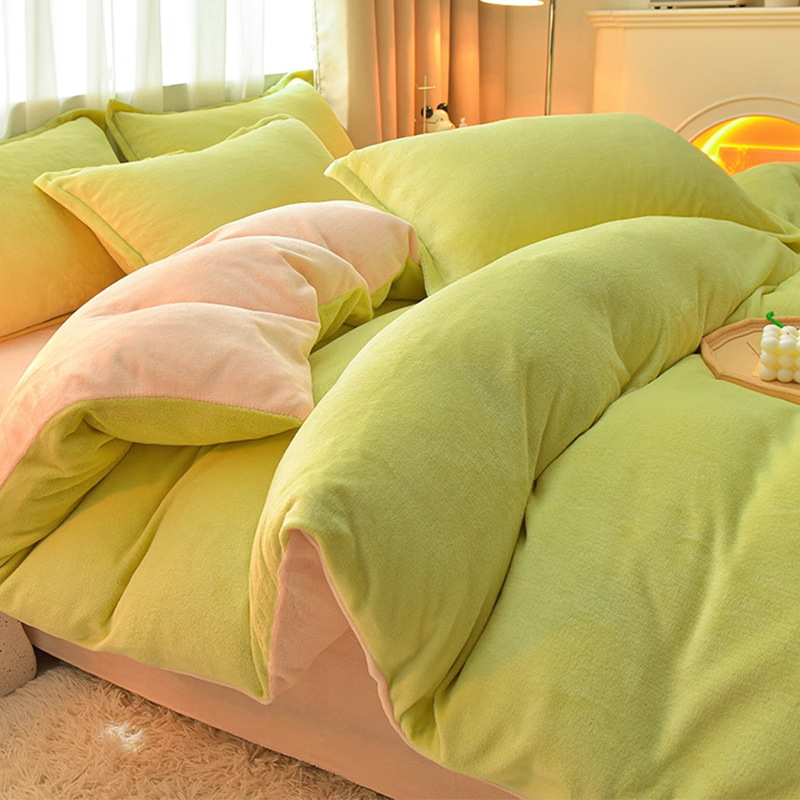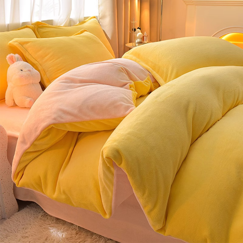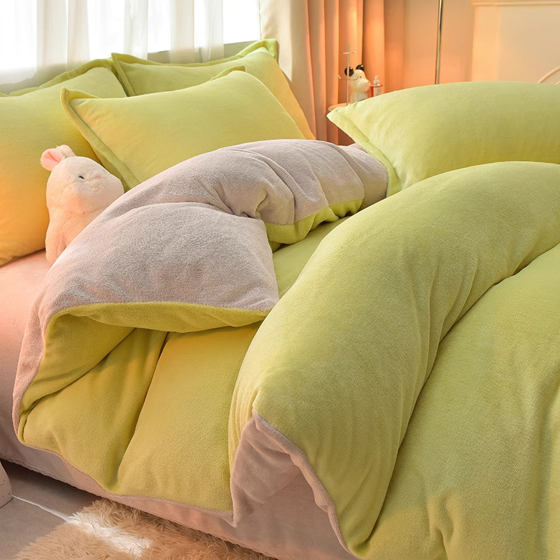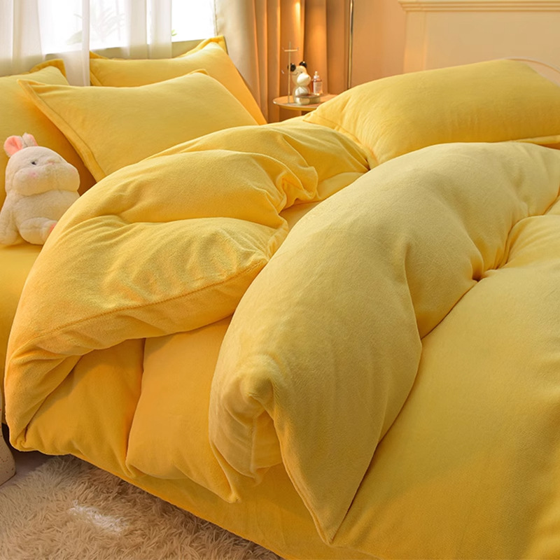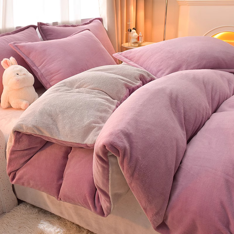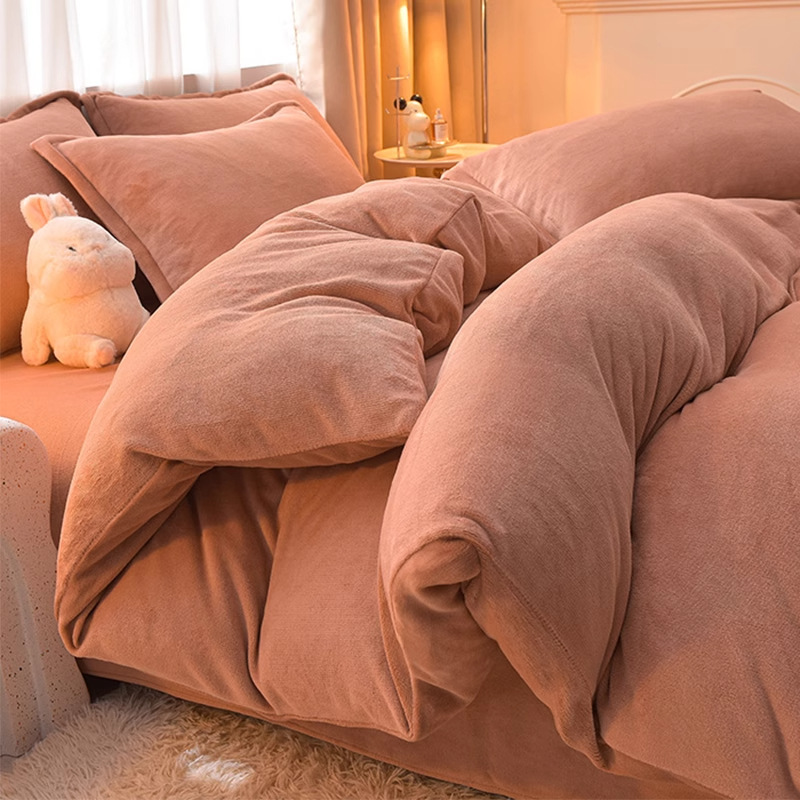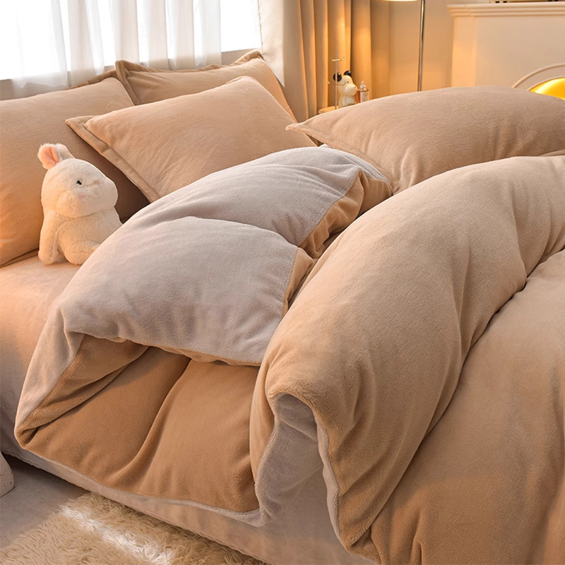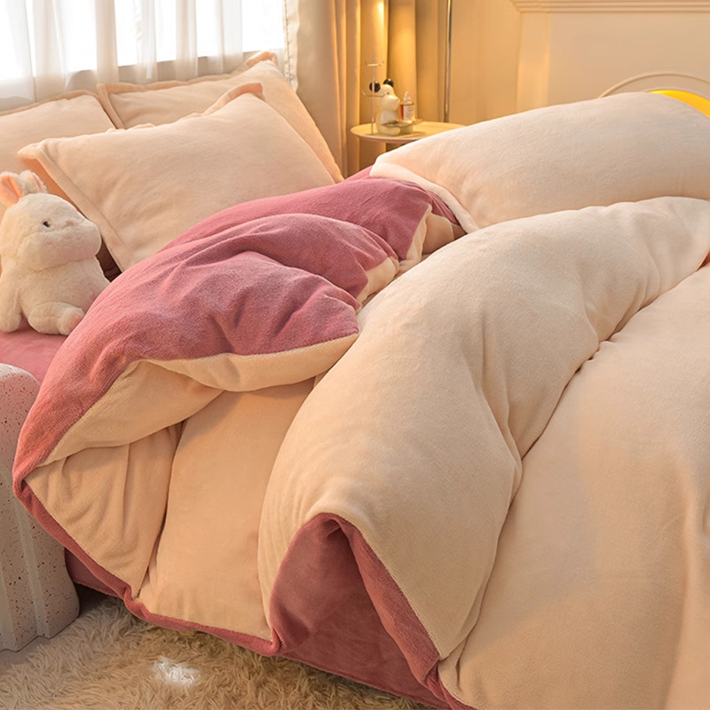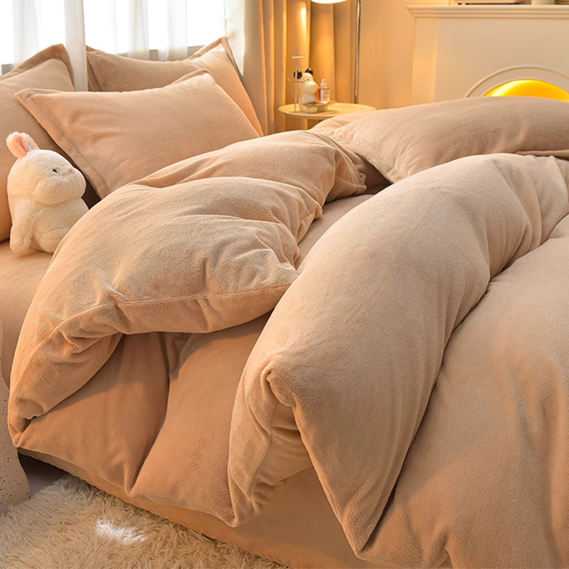 Главная страница > Молочный бархатный комплект из четырех предметов, однотонный зимний утолщенный студенческий общежитие, бархатный пододеяльник из трех предметов, наволочка, простыни, двусторонние, теплые
