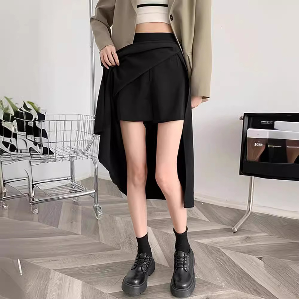 Летний черный костюм с открытым полом юбка детка 2024 новый маленький человек с высокой талией