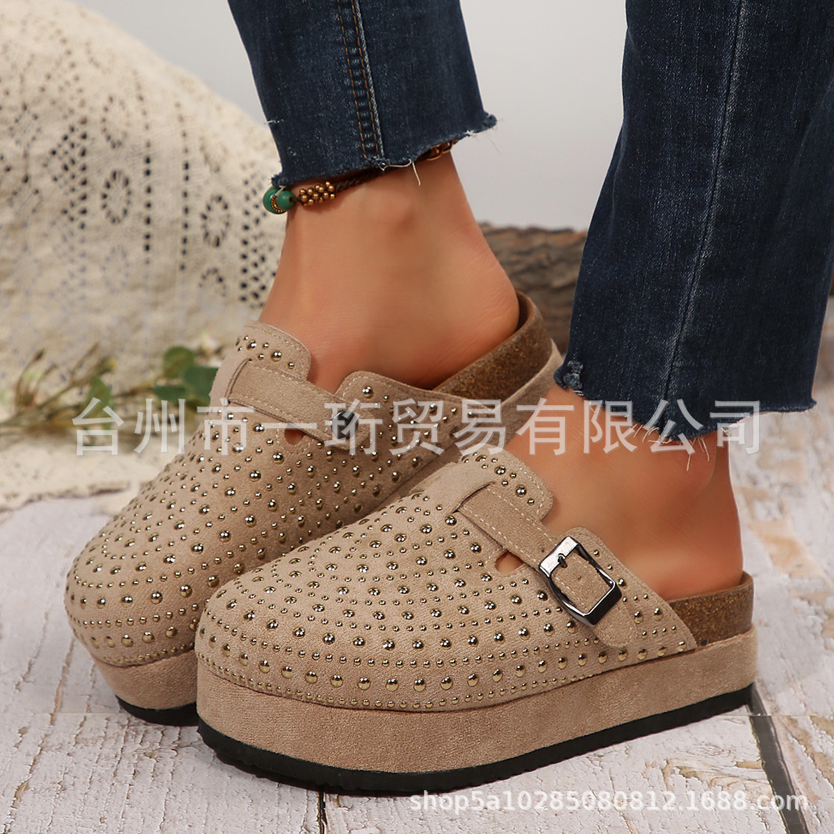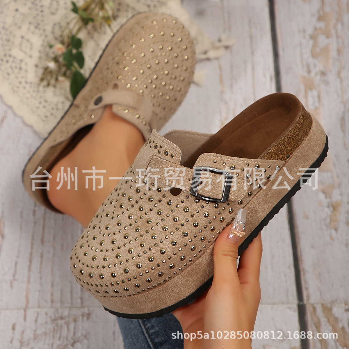 Главная страница > Баотоу тапочки женский 2025 новый Мэри Джейн стразы европейские и американские трансграничные большие размеры круглые головки пряжки пробковые тапочки оптом