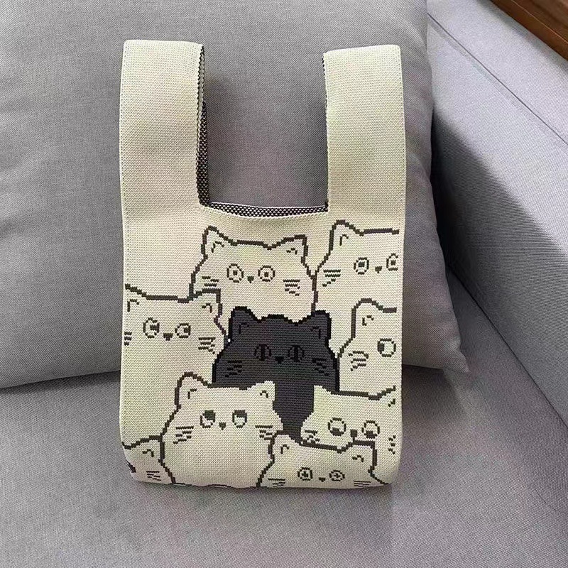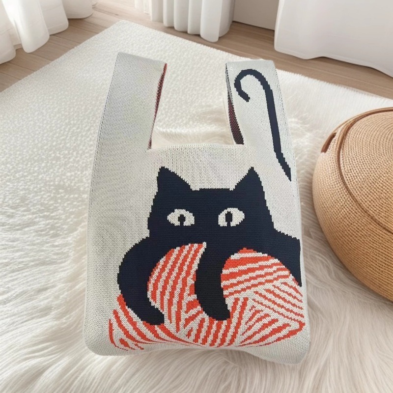 Главная страница > Новая стильная женская сумка из трикотажной ткани, вязаная шерстяная сумка-ведро, универсальная повседневная сумка-тоут в корейском и японском стиле, сумка для обеда.