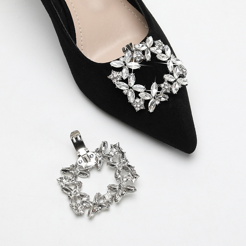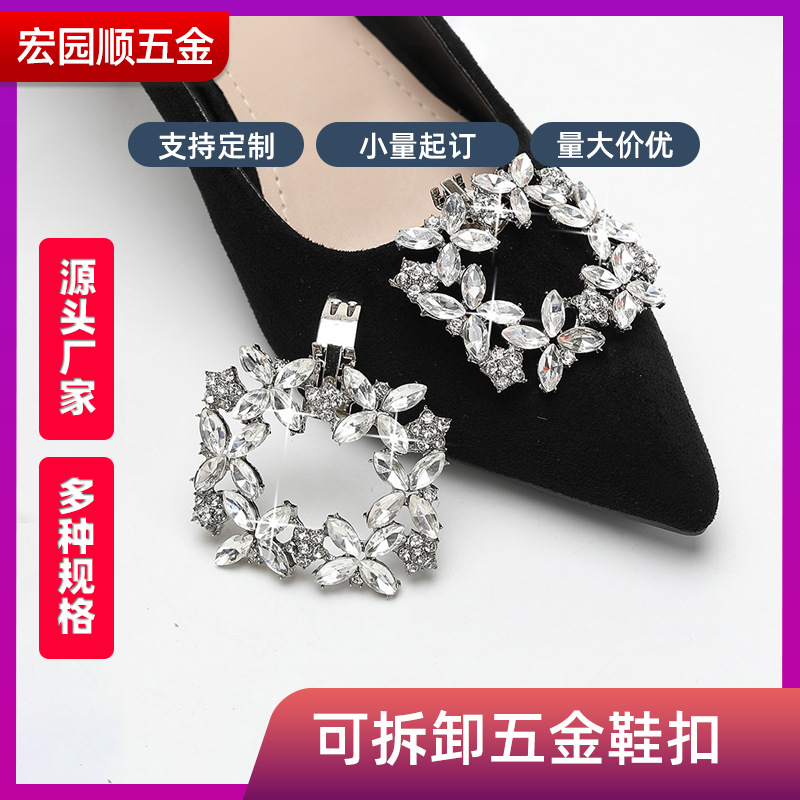 Новые трансграничные декоративные элементы для обуви: металлические пряжки, фурнитура, аксессуары с металлическими стразами, кожаные декоративные пряжки для обуви, серебряные блестящие аксессуары для обуви с имитацией бриллиантов.