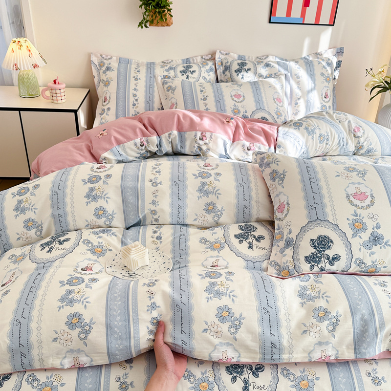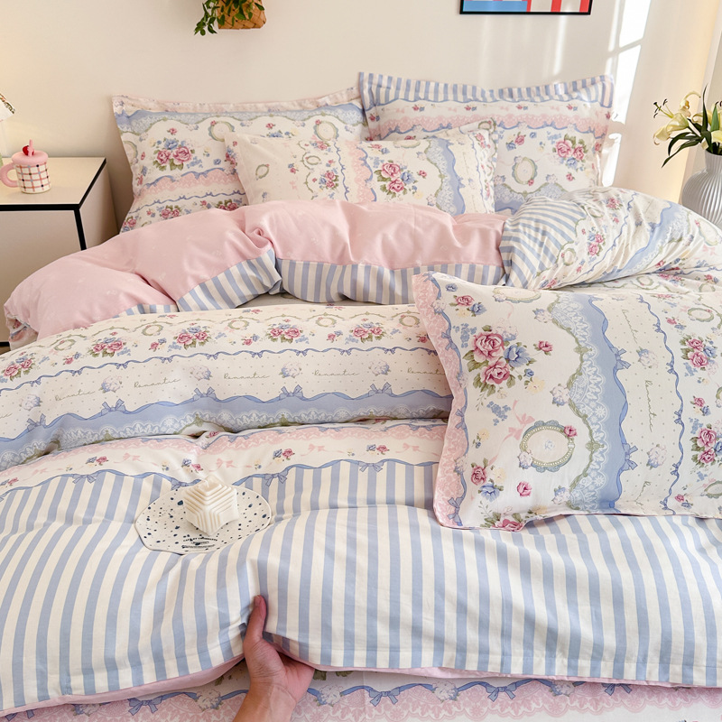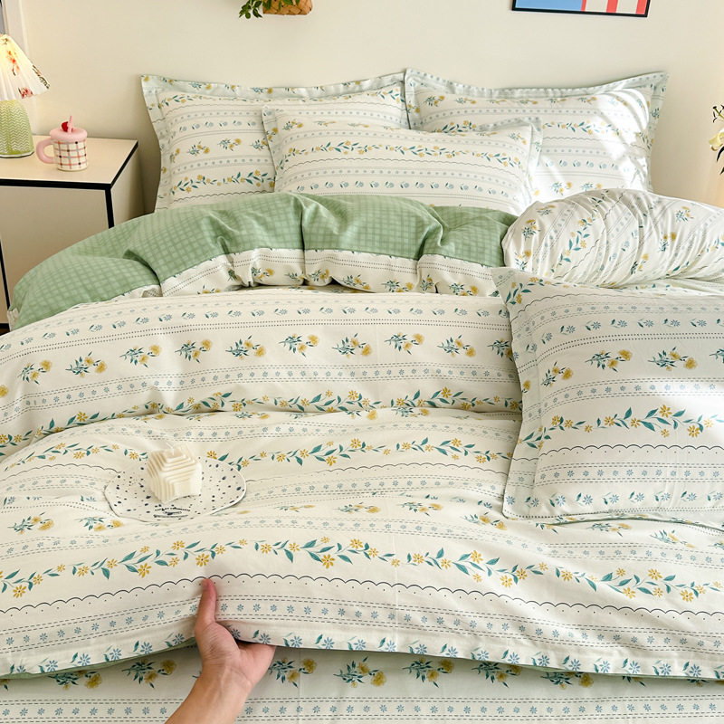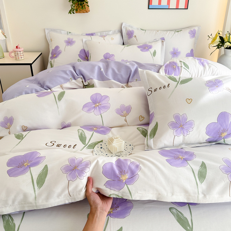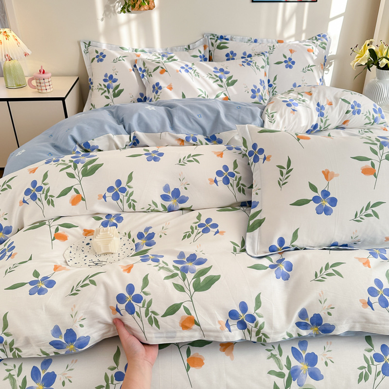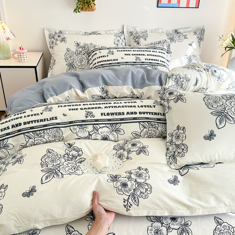 Главная страница > Shu Zunke | ins Style чистый хлопок, простая хлопковая Простыня из четырех частей, приятная для кожи, пододеяльник, голая спальная кровать из трех частей