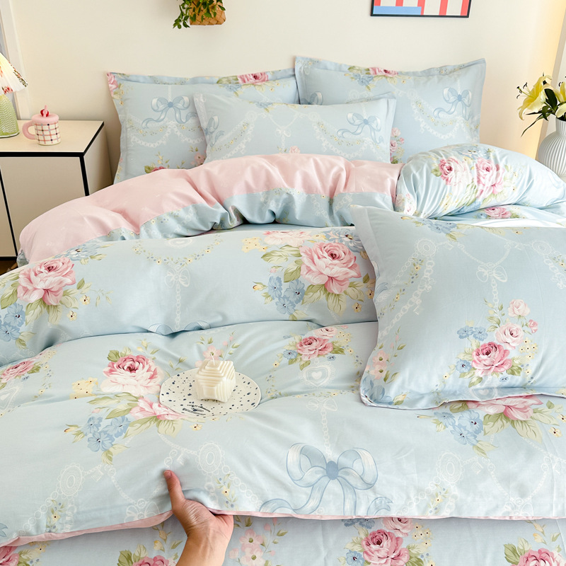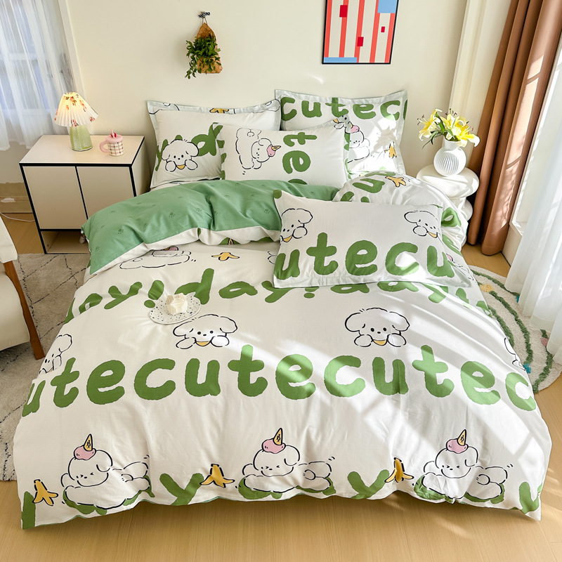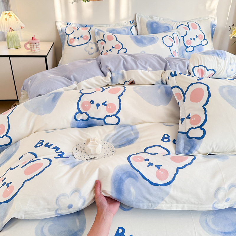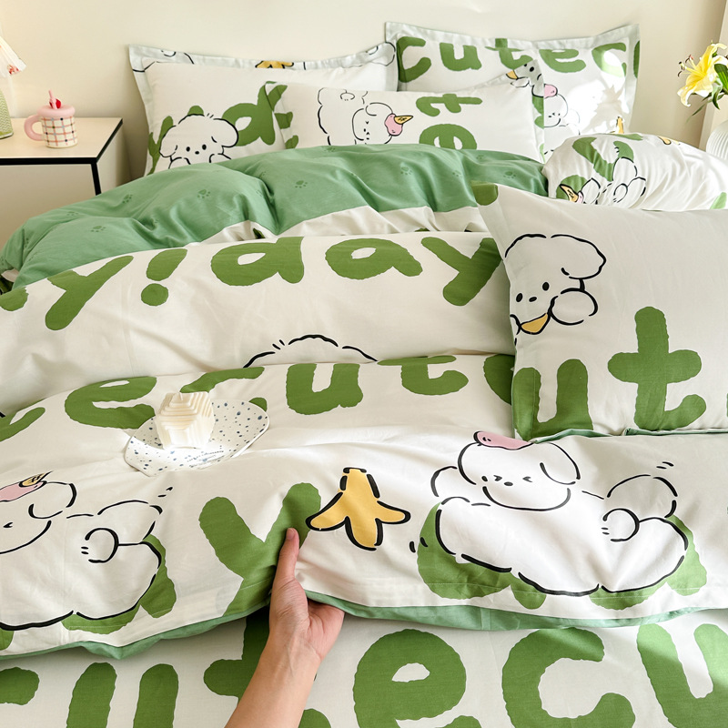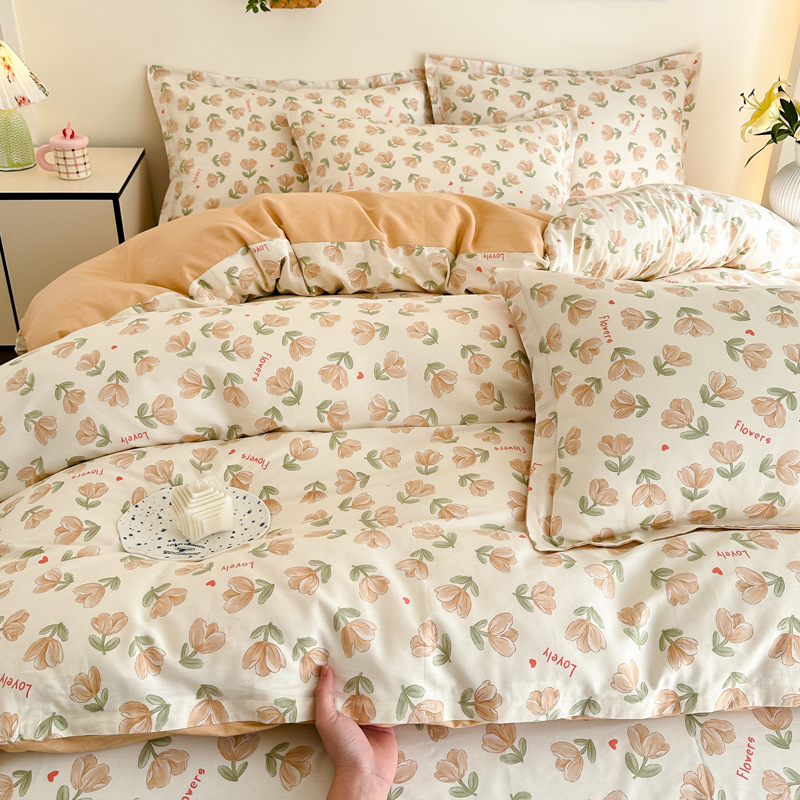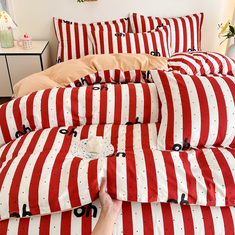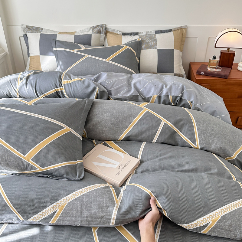 Главная страница > Shu Zunke | ins Style чистый хлопок, простая хлопковая Простыня из четырех частей, приятная для кожи, пододеяльник, голая спальная кровать из трех частей