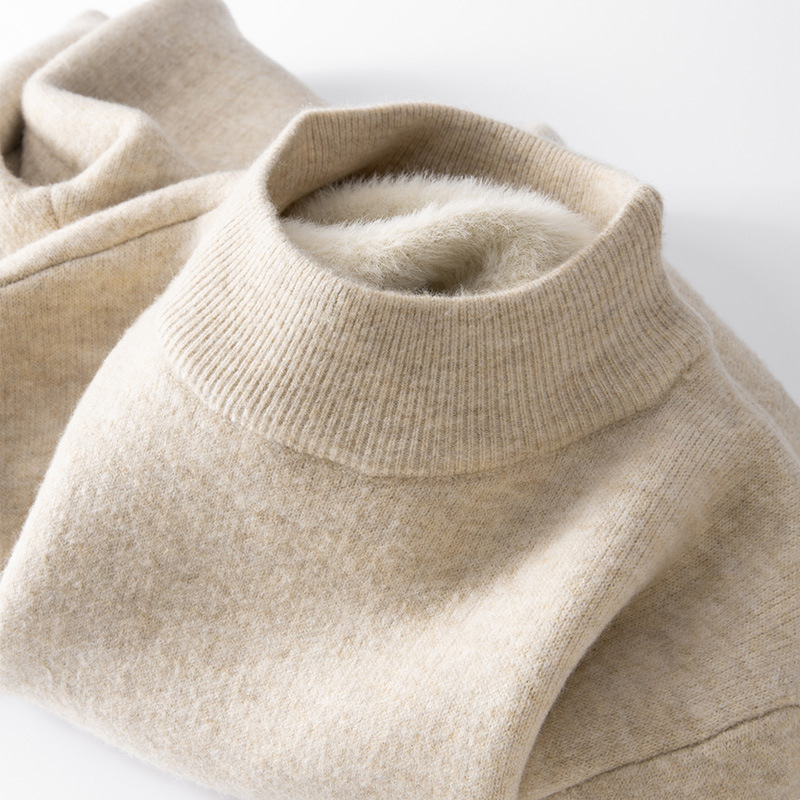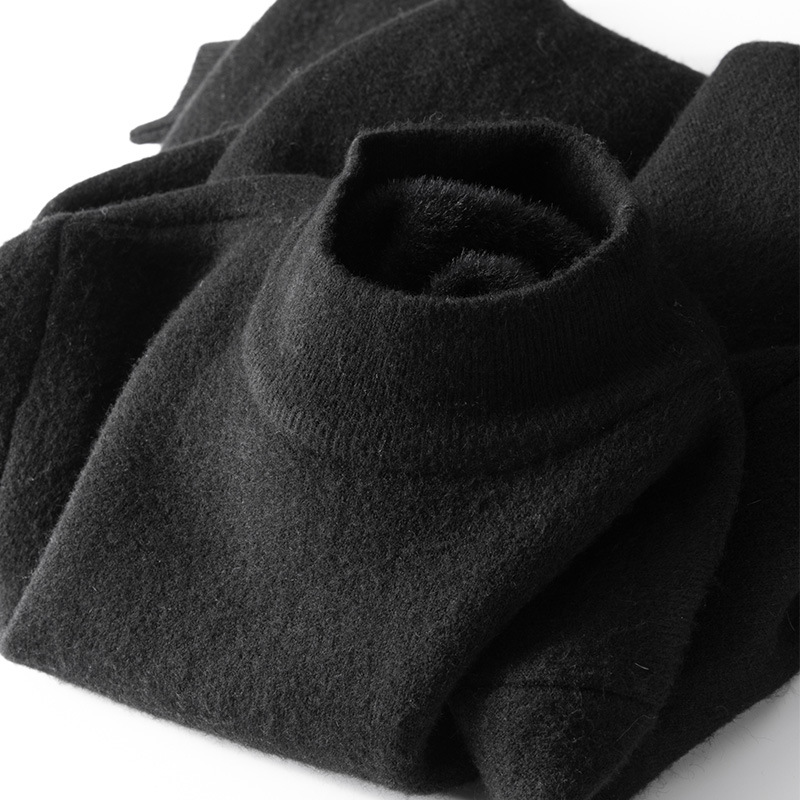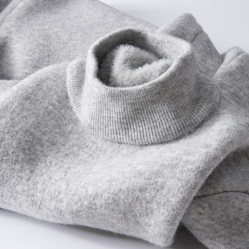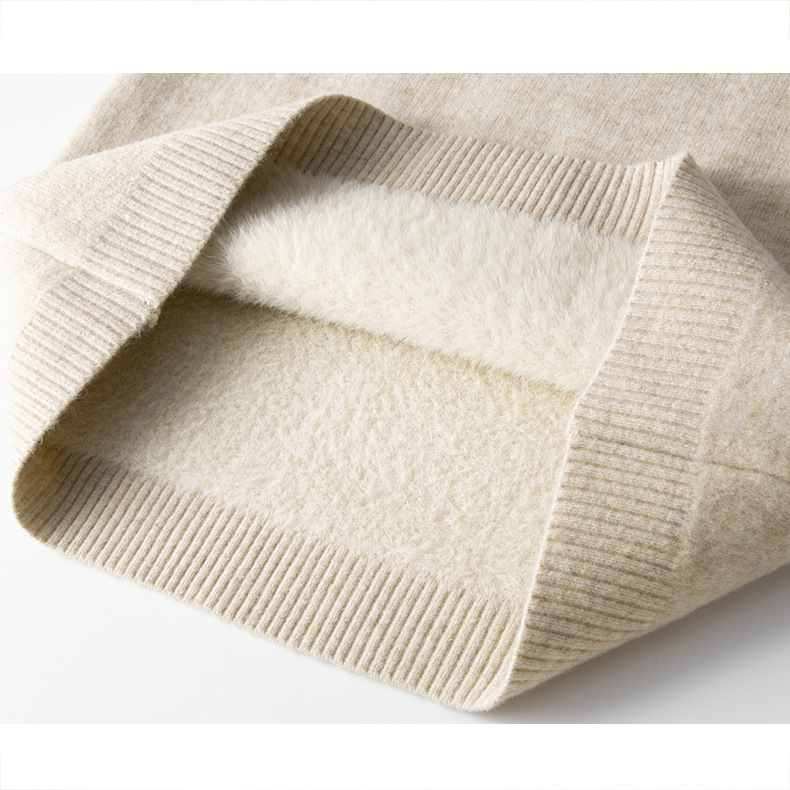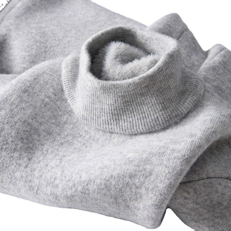 Главная страница > Высококачественный цельный бархатный мужской свитер со средним воротником и высоким воротом, зимний бархатный утолщенный базовый свитер на флисовой подкладке, вязаный свитер