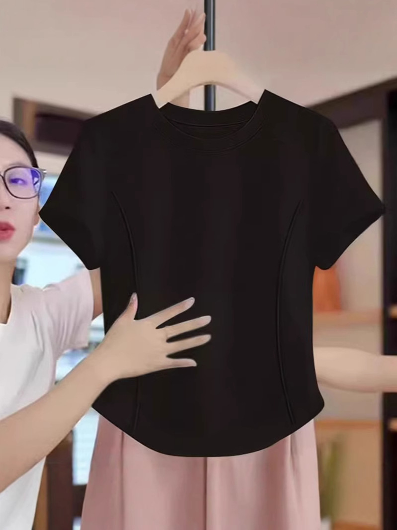 Главная страница > Летний новый гонконгский вкус премиум топы хлопчатобумажная футболка женская короткая рукавная корейская версия изогнутого подола