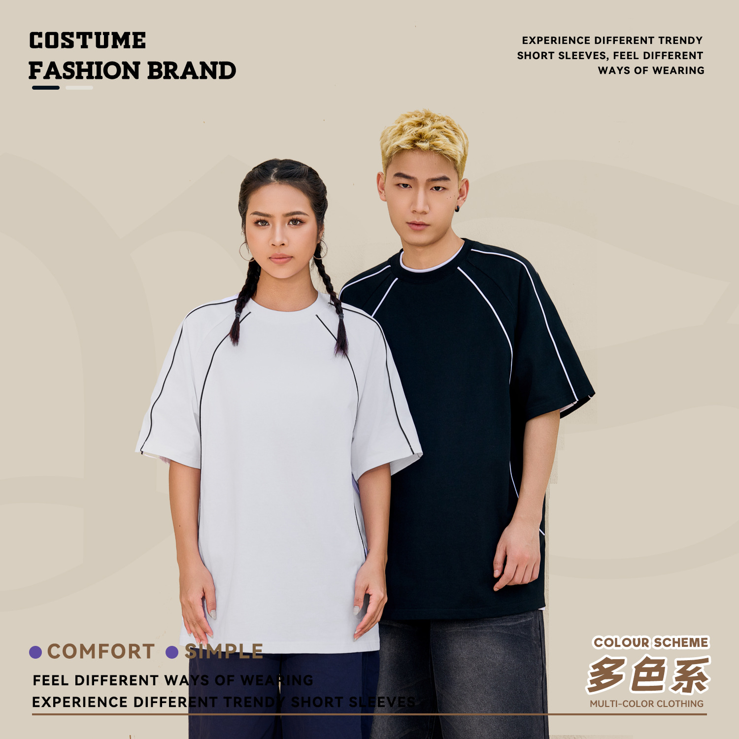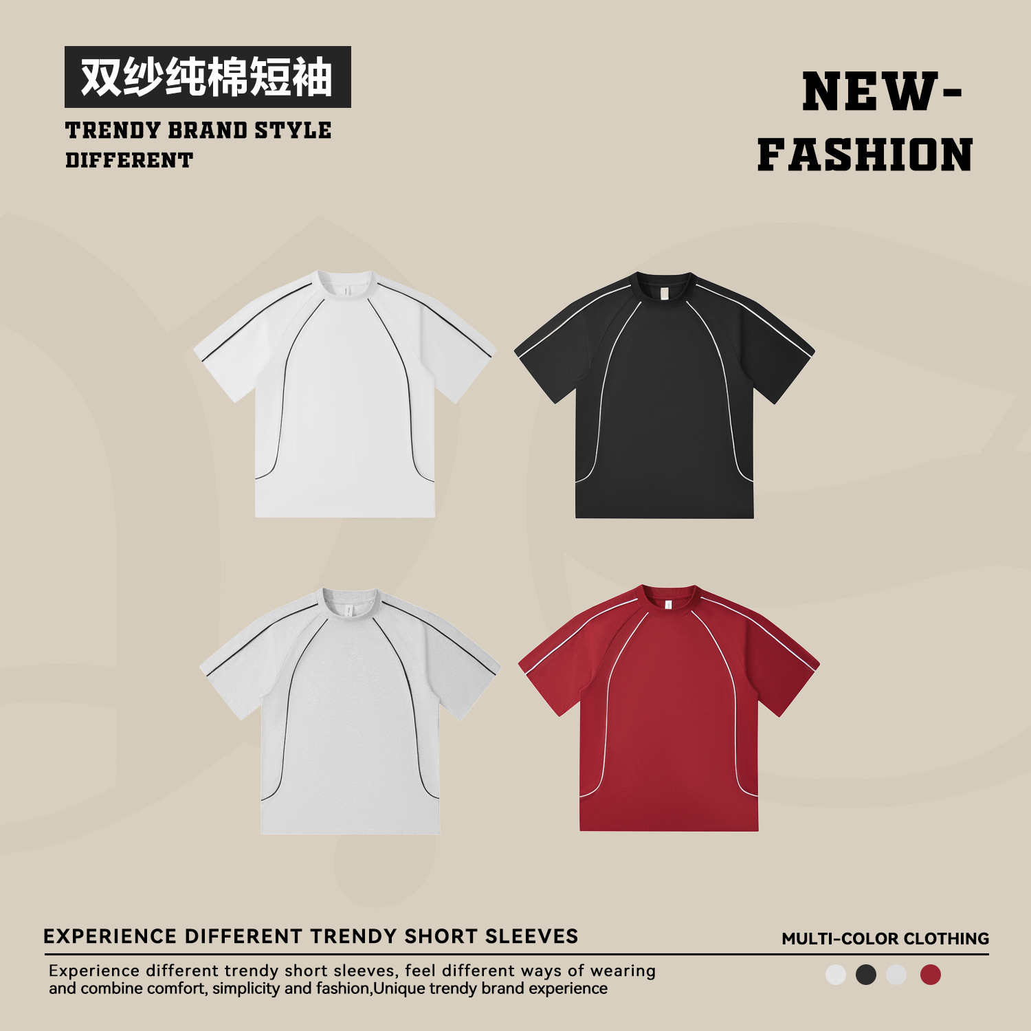 Главная страница > Летний вес 250G изогнутые линии дизайн с круглым вырезом с половиной рукава футболка мужской американский ретро минималистский дикий топ